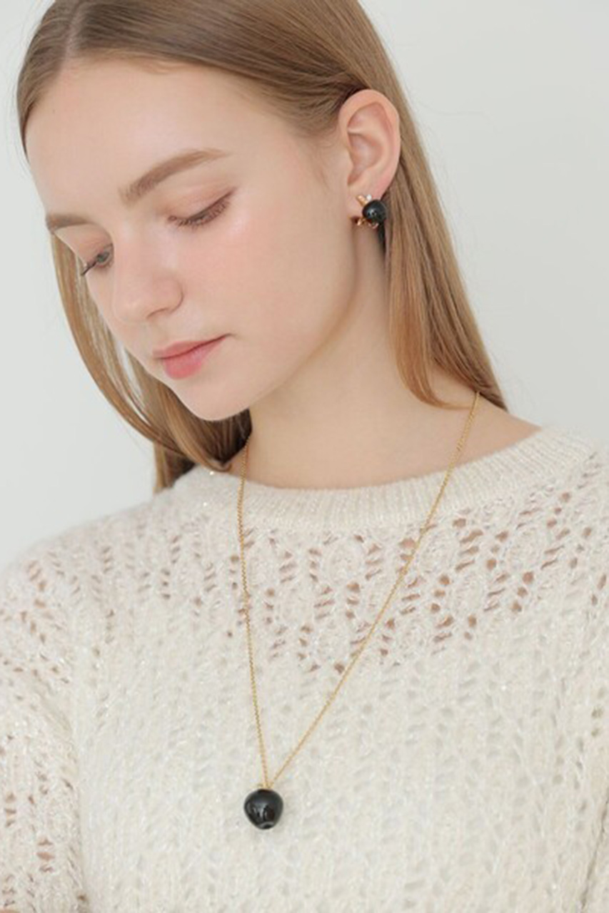樹脂とガラスを使用したリンゴモチーフのネックレス。