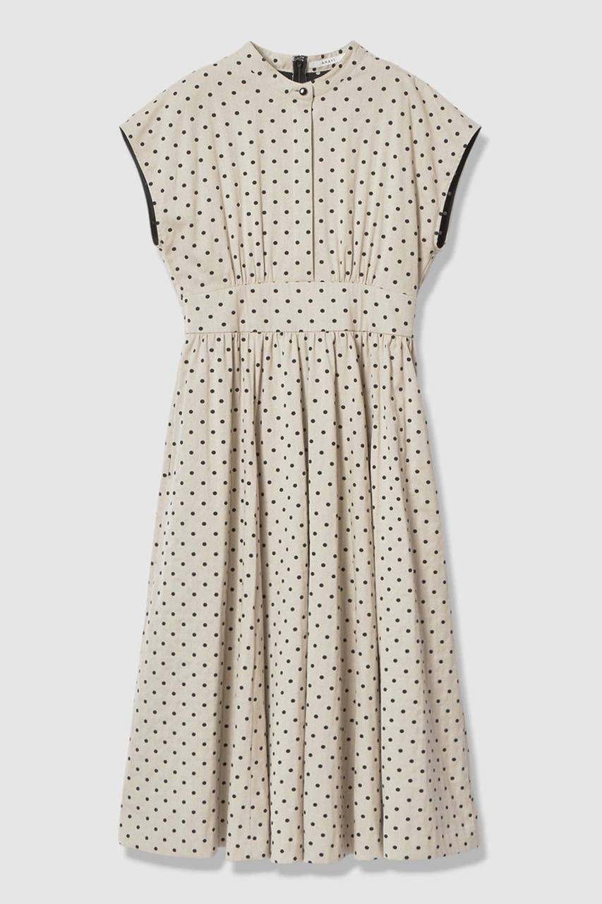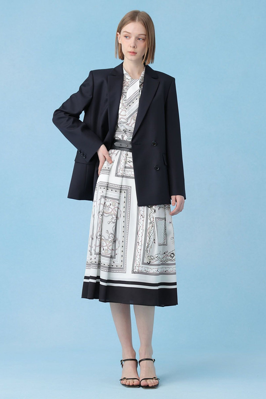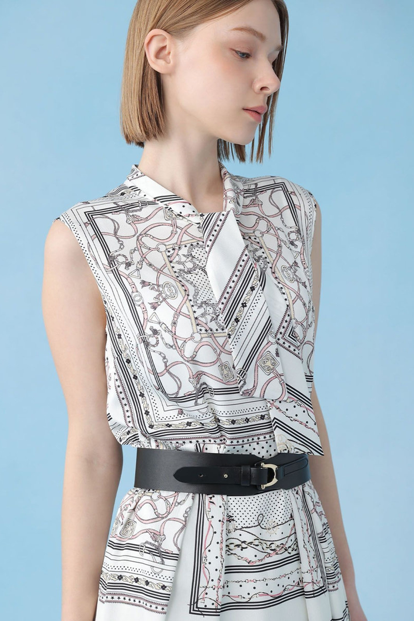ドットやチェーン、マリンモチーフをあしらったスカーフ柄が目を惹くANAYIオリジナルのプリント素材です。