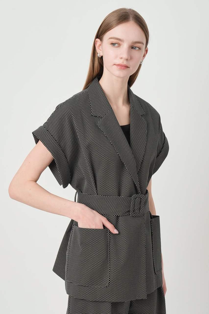 《モノトーンドットジャガードベルテッド ジャケット》