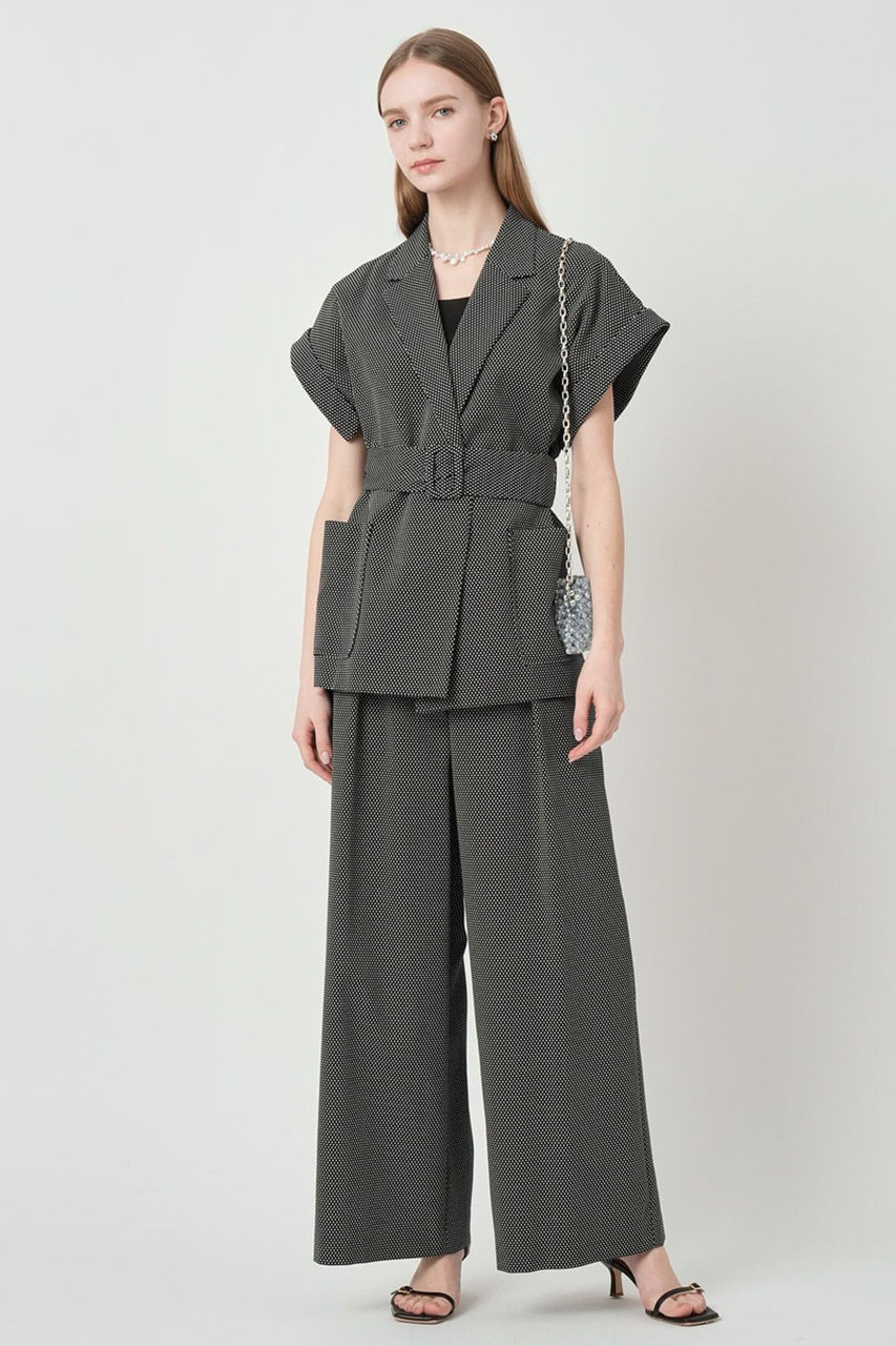 ≪モノトーンドットジャガードベルテッド ジャケット≫