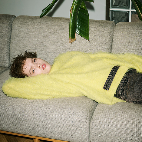 柔らかなカラーリングと暖かみのある毛足の長いシャギーニットの愛称は抜群。