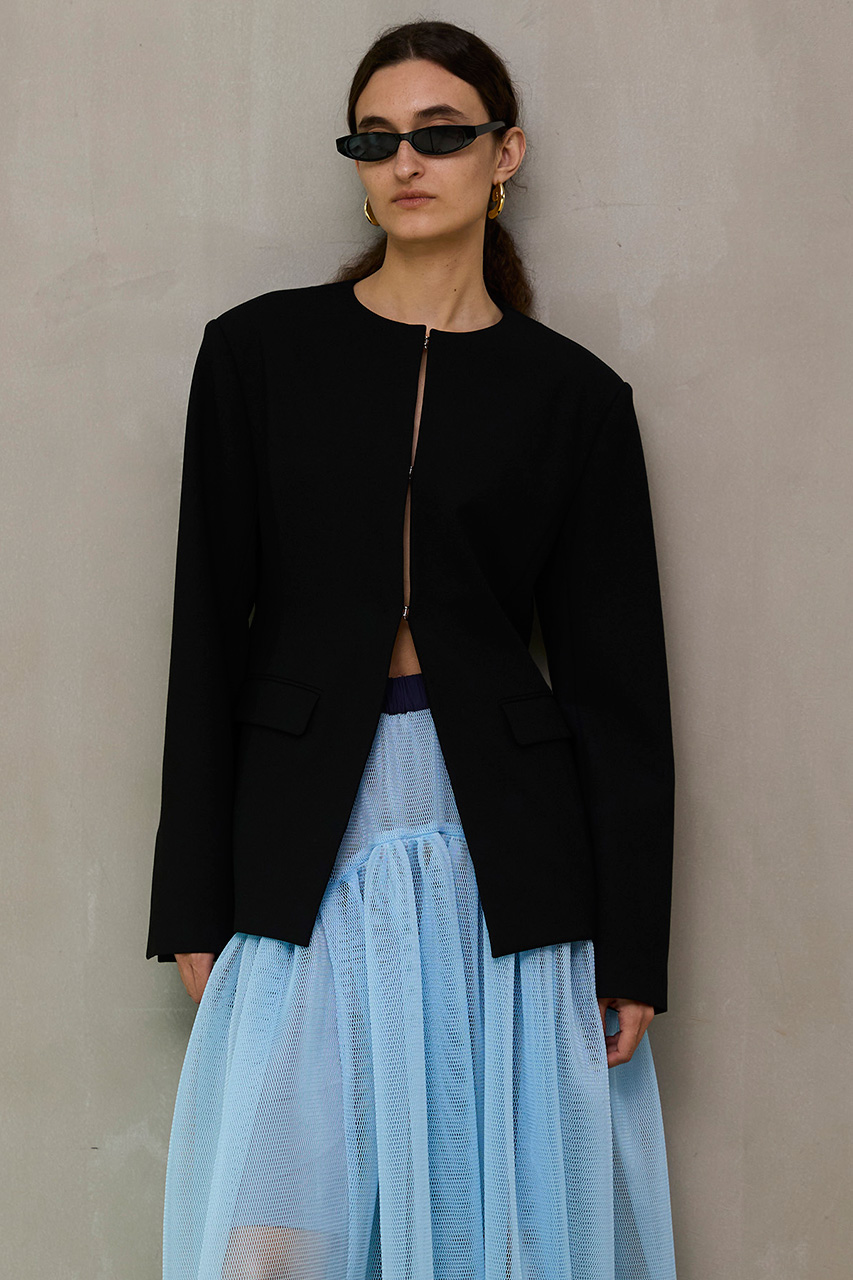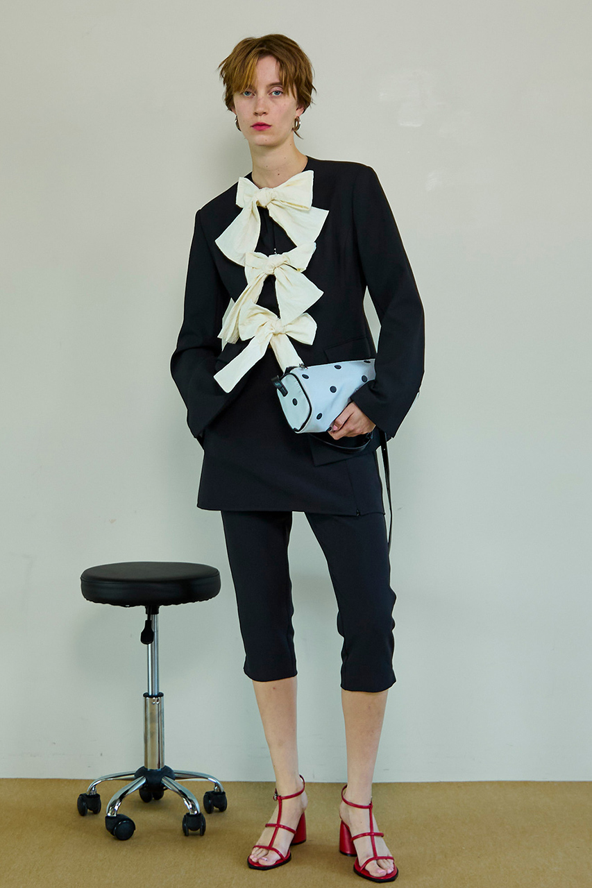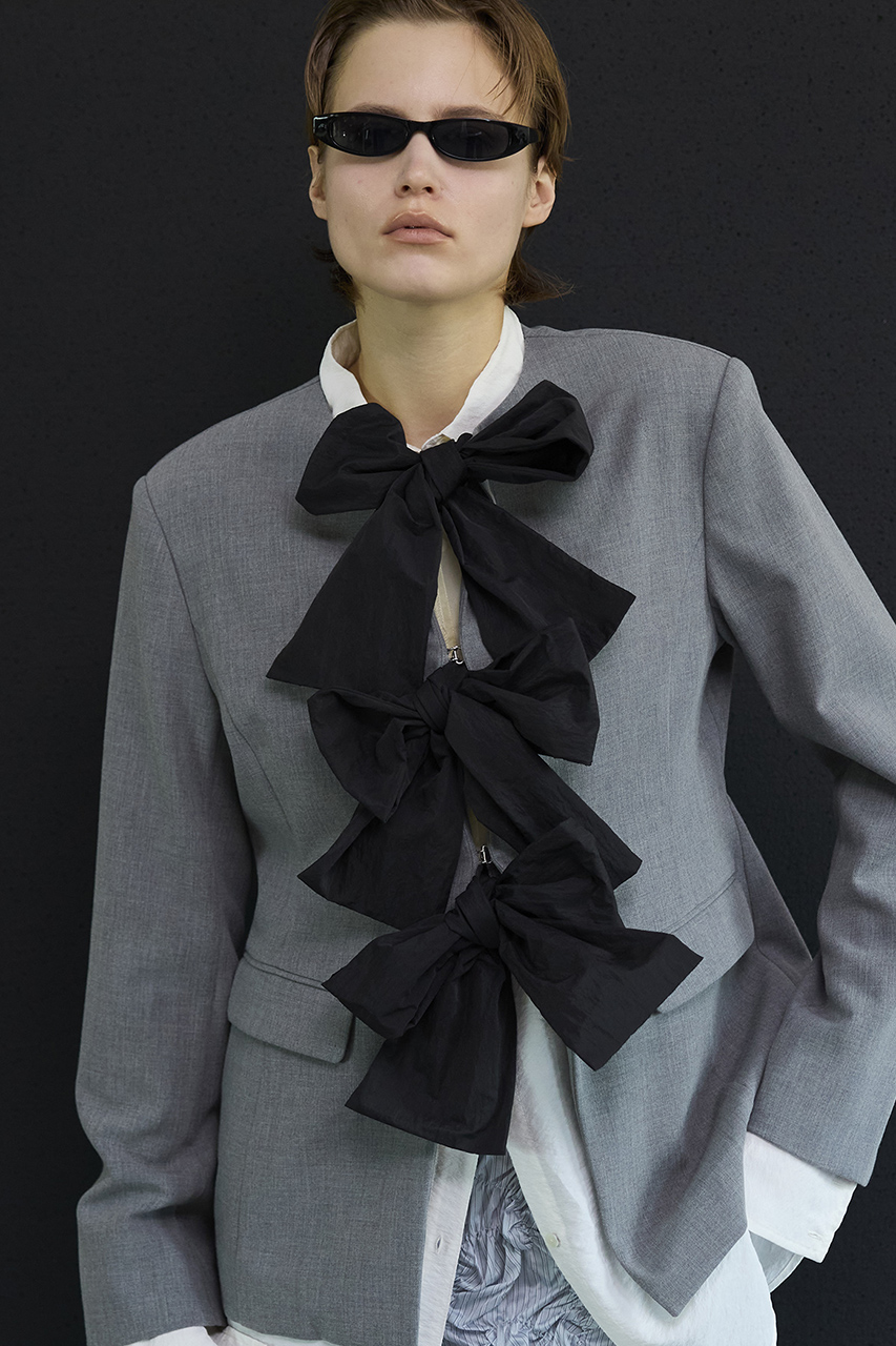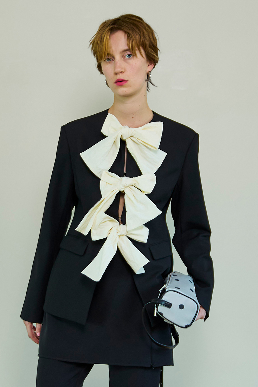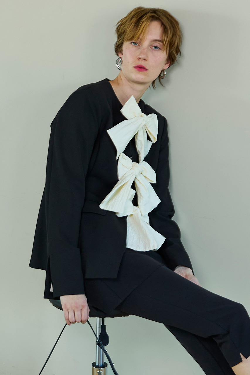 No-Collar 2WAY Ribbon Jacket/ノーカラー2WAYリボンジャケット