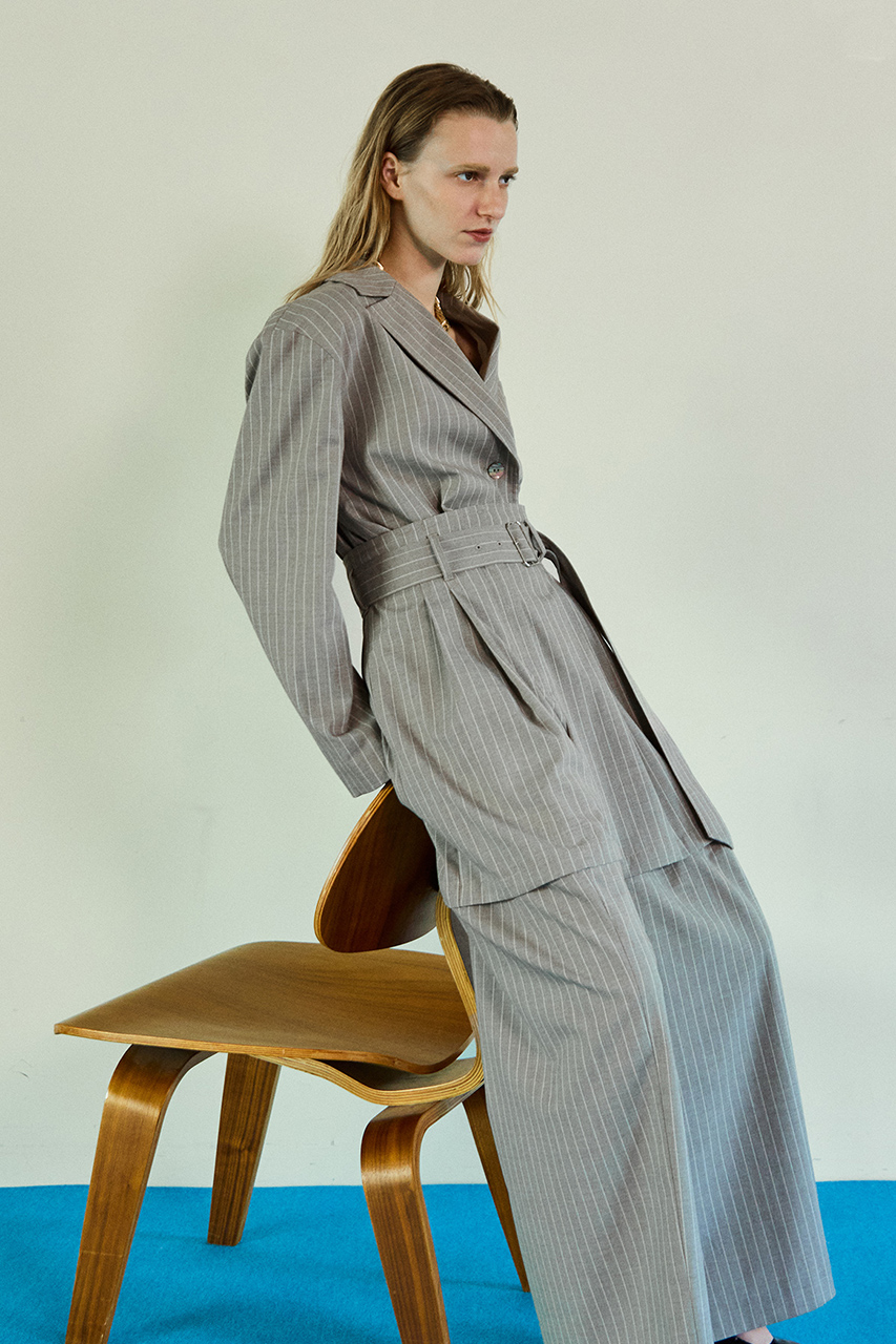 シンプルながら計算されたシルエットで、重ね着も自在に楽しめる。