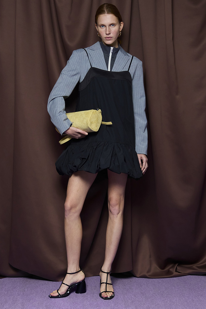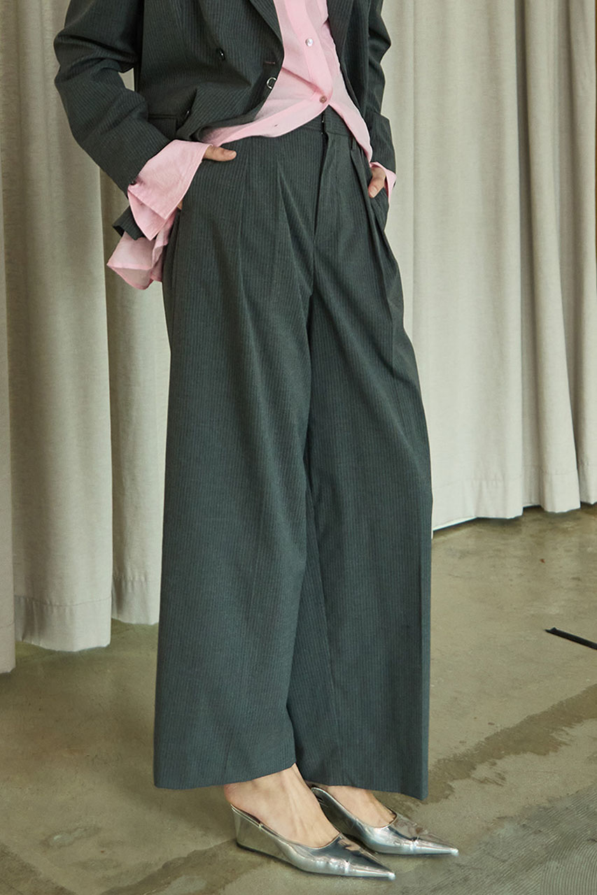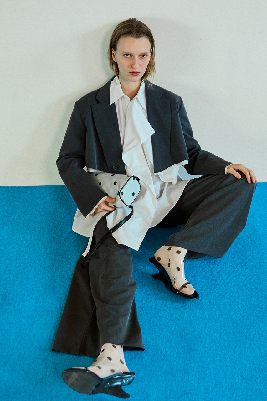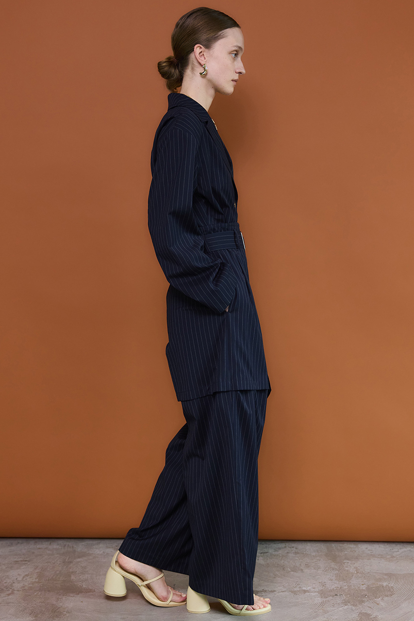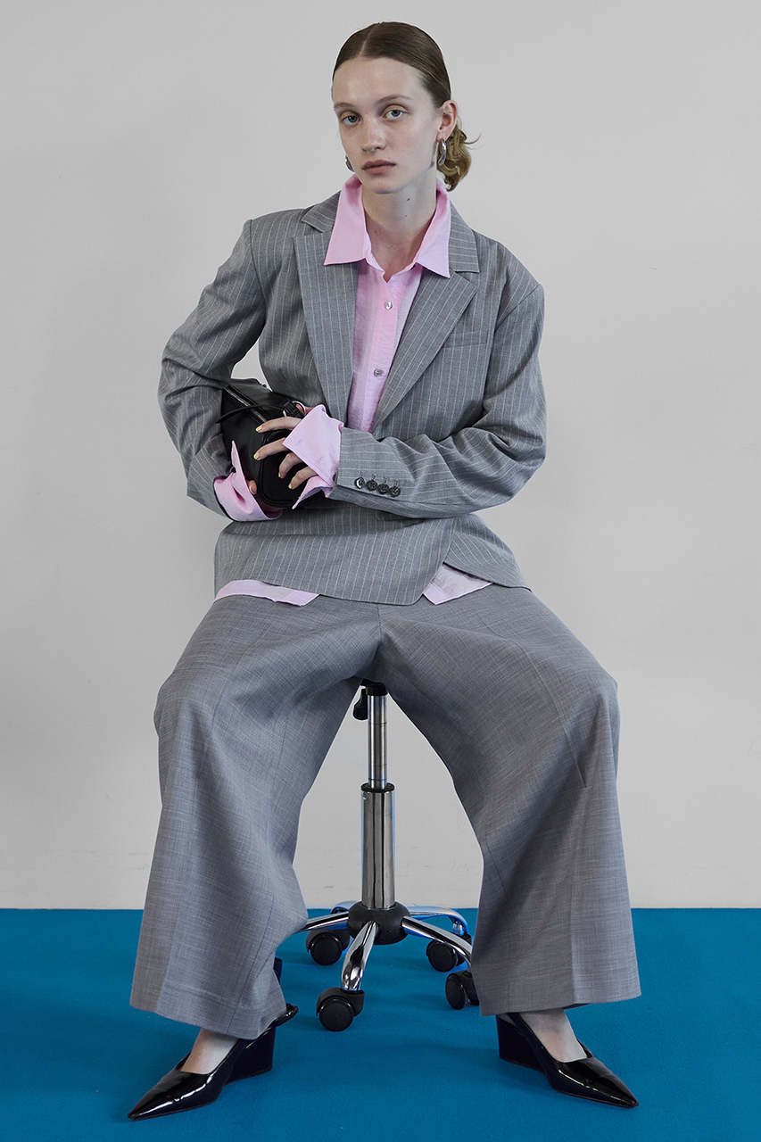 バックにはプリーツを施し、フェミニンな要素をマニッシュなテーラードに融合。1枚で着こなしの幅を広げてくれる、今季注目のアイテム。
