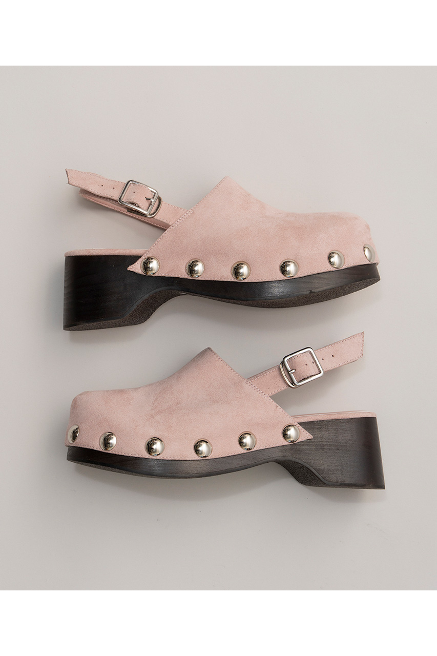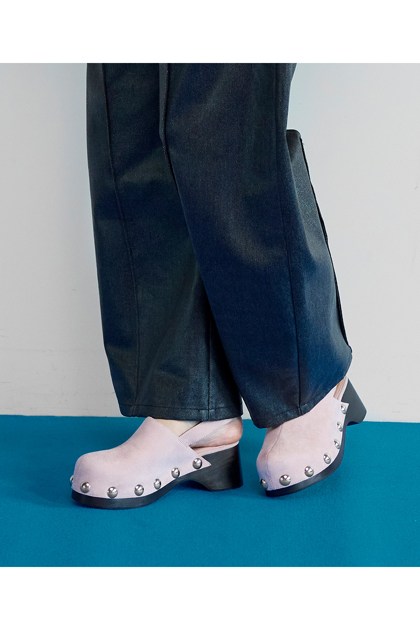 大きめのスタッズが目を惹く、リアルウッドを使用したソールが高級感のあるサボ。