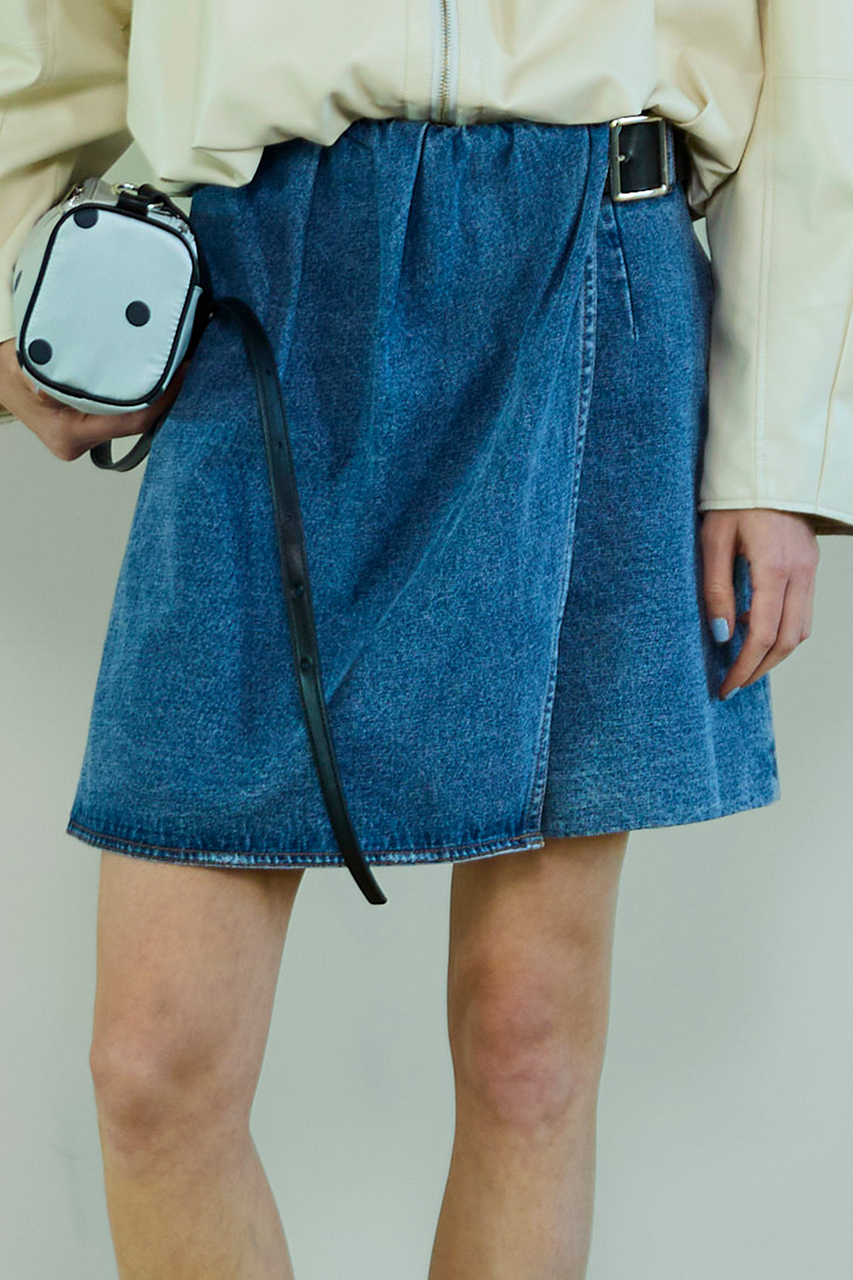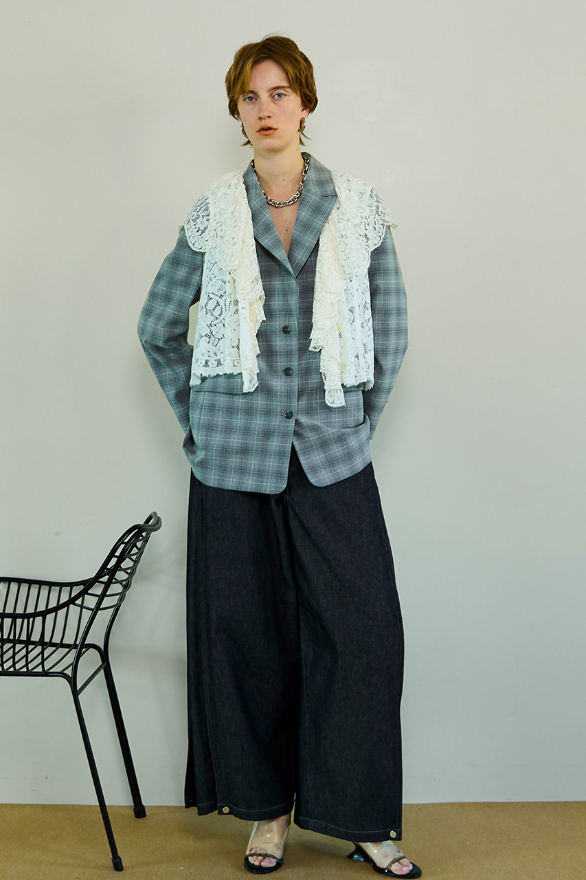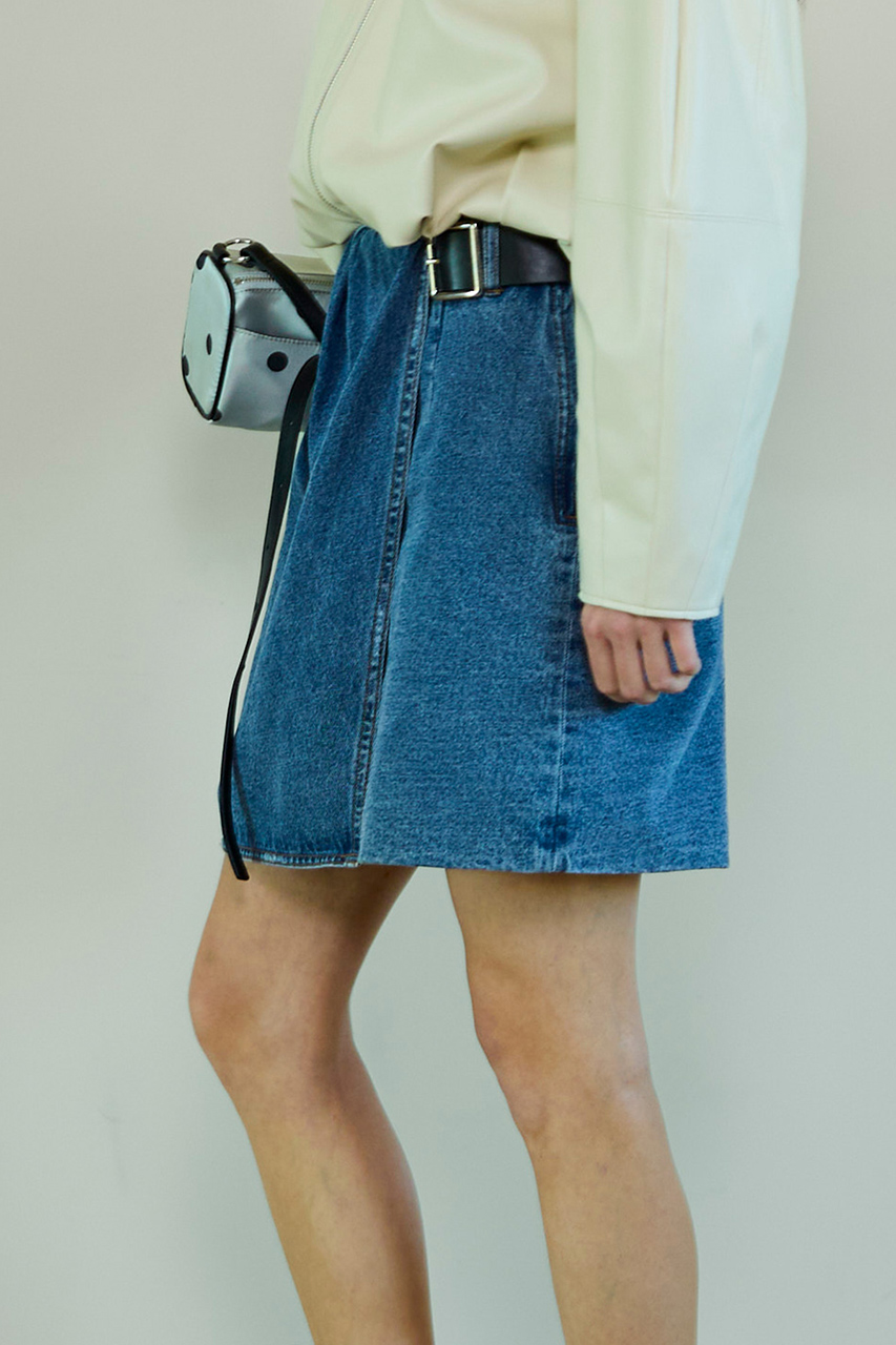オーバーサイズがポイントのデニムジャケット。本体両脇裾のタブでサイズの調整が可能。また付属のストラップを結んでいただくとウエストマークした着こなしもでき、ストラップは取り外しが可能なので気分に合わせたスタイリングが楽しめます。デニムオンデニムで取り入れやすいトレンドを楽しんで。