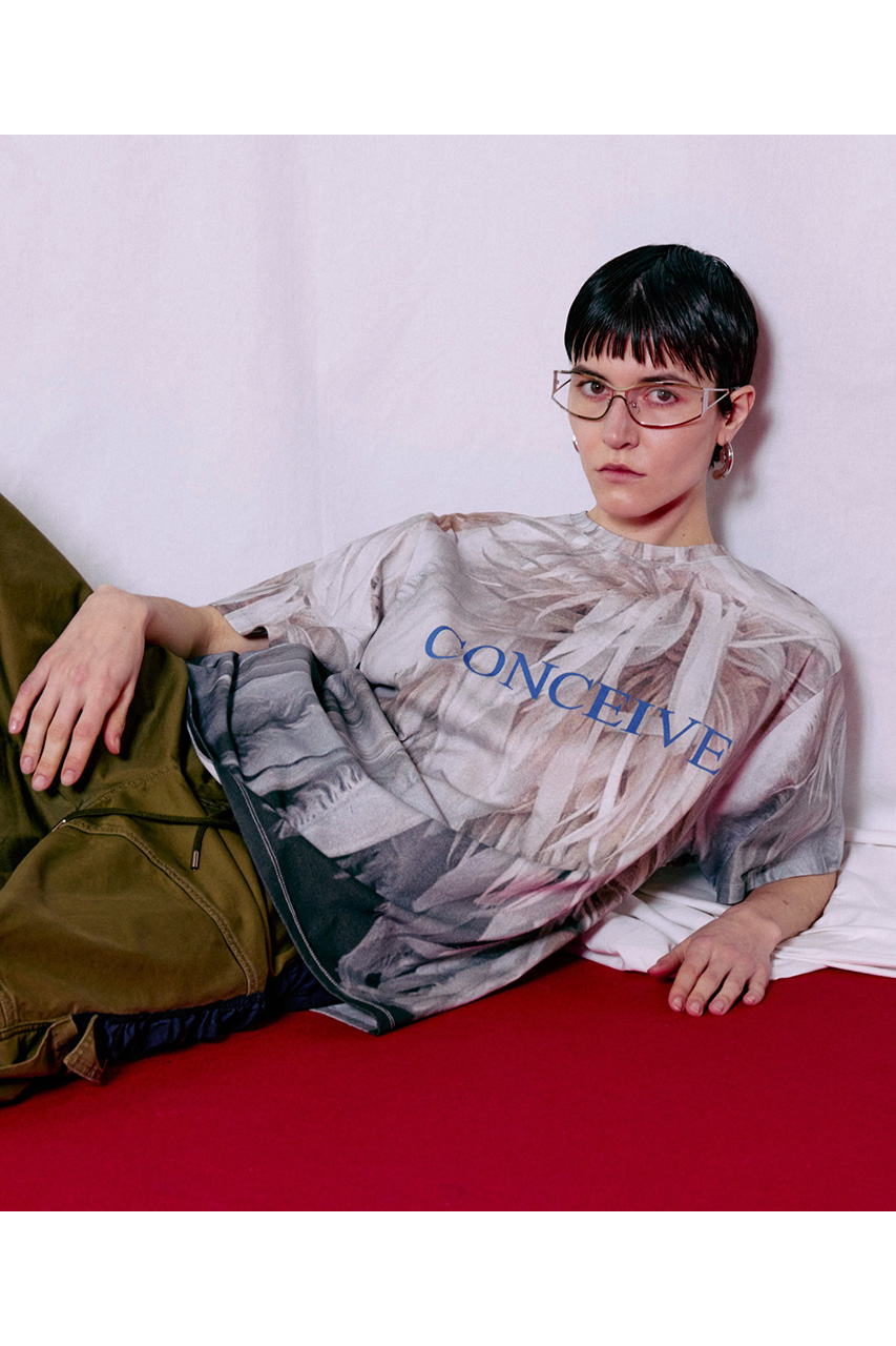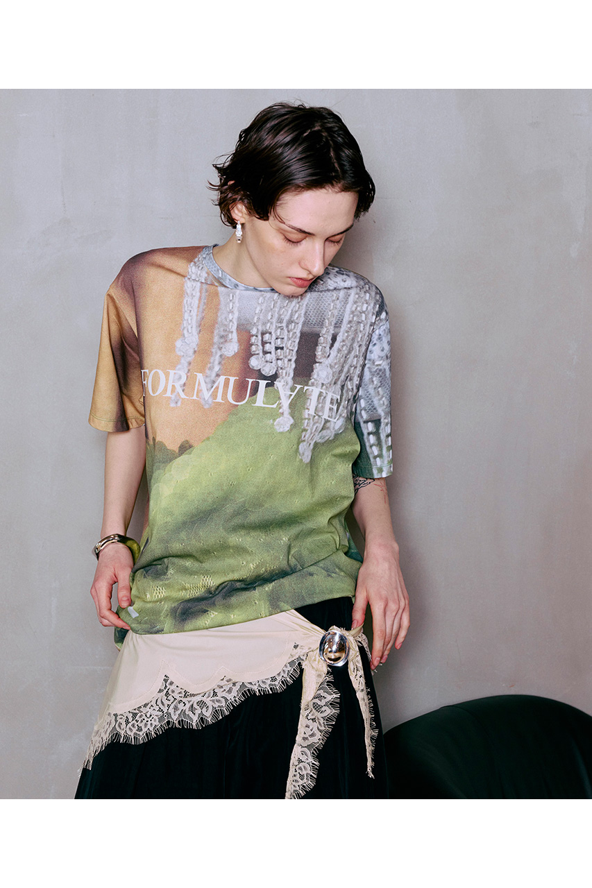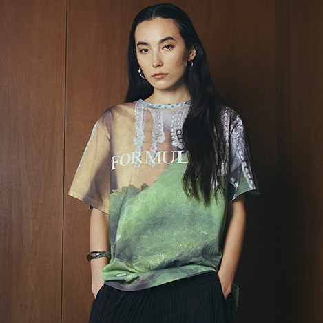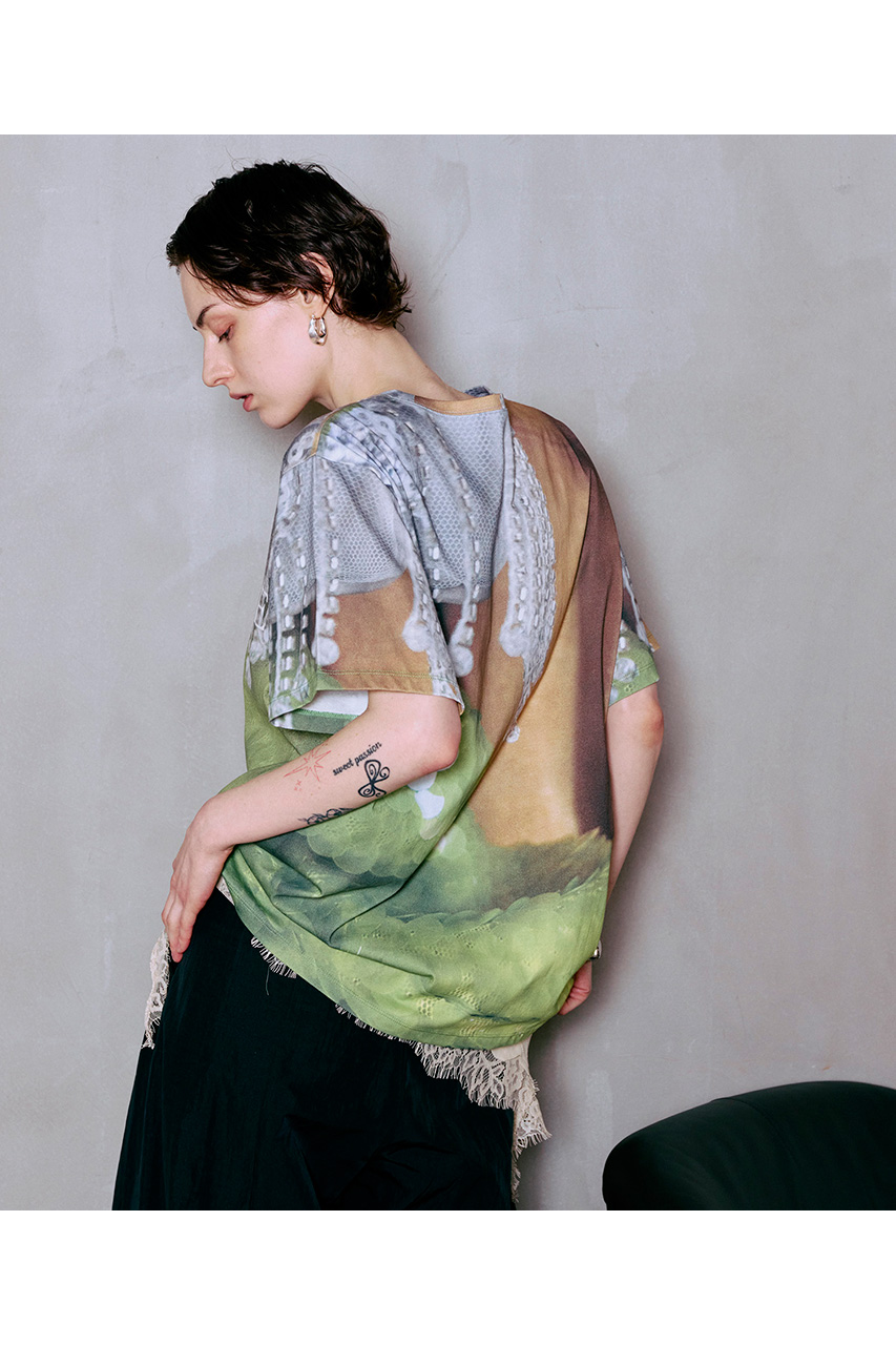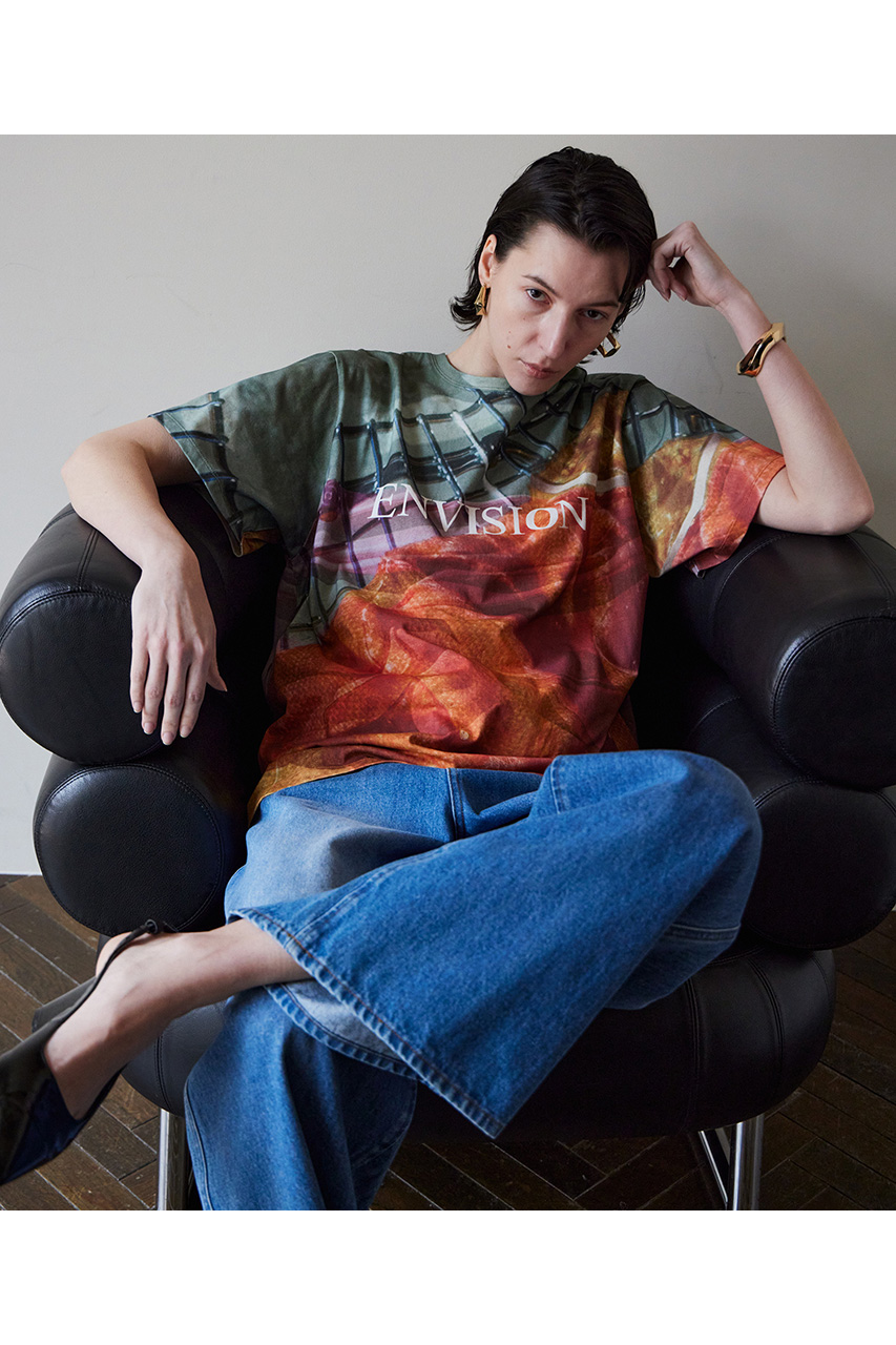 素材そのものの質感をダイナミックに切り取った写真を全面にプリントした、存在感のあるオーバーサイズTシャツ。MAISON SPECIALのアーカイブから厳選した素材を撮影し、グラフィック化したオリジナルプリントが魅力。フロントのシンプルなロゴが全体を引き締めます。