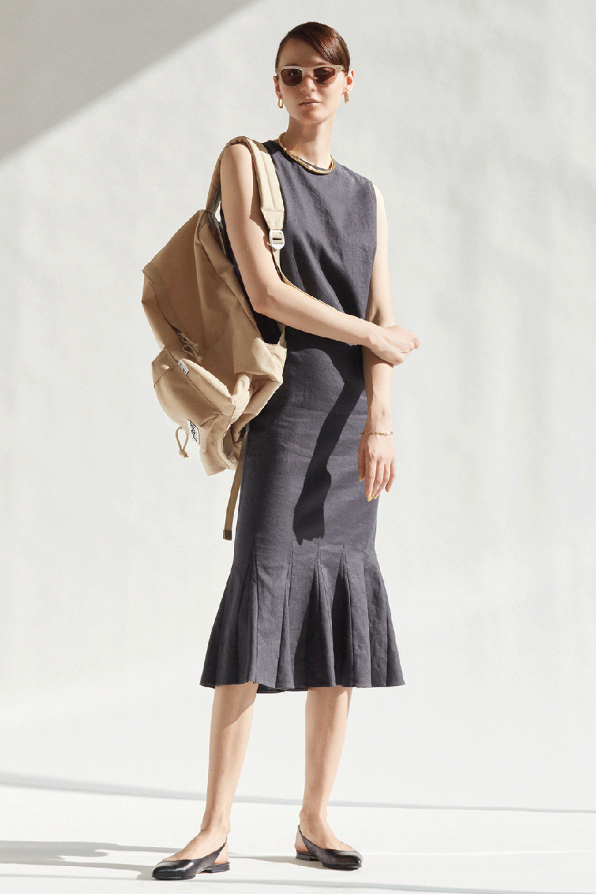 ELLE SHOP別注 リネン混裾フレアワンピース