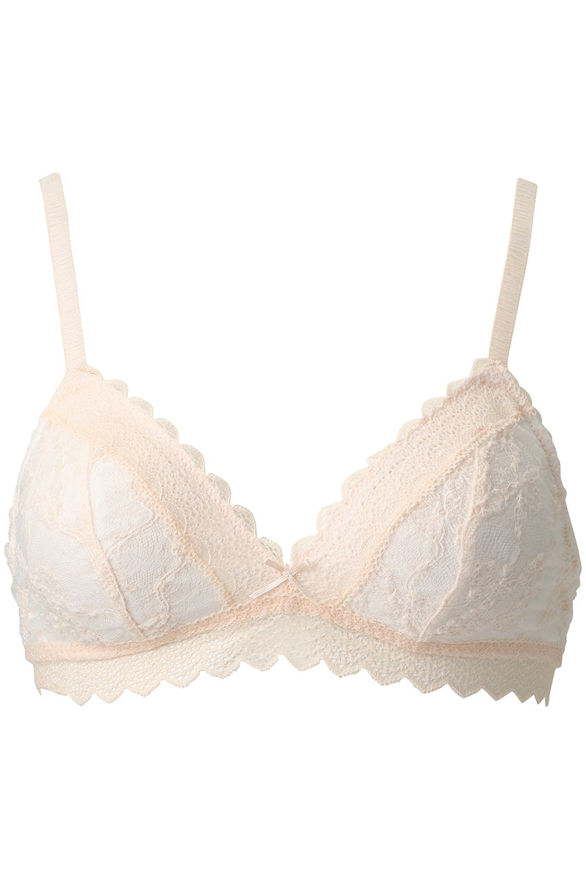 アンダーバックまで贅沢な総レースのノンワイヤーブラジャー。スカラーの山がはっきりした幾何学調のレースを組み合わせ品のある華やぎをプラス。定評のある軽い着け心地で、日常に寄り添います。