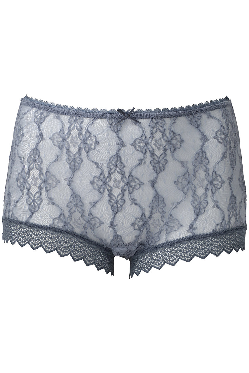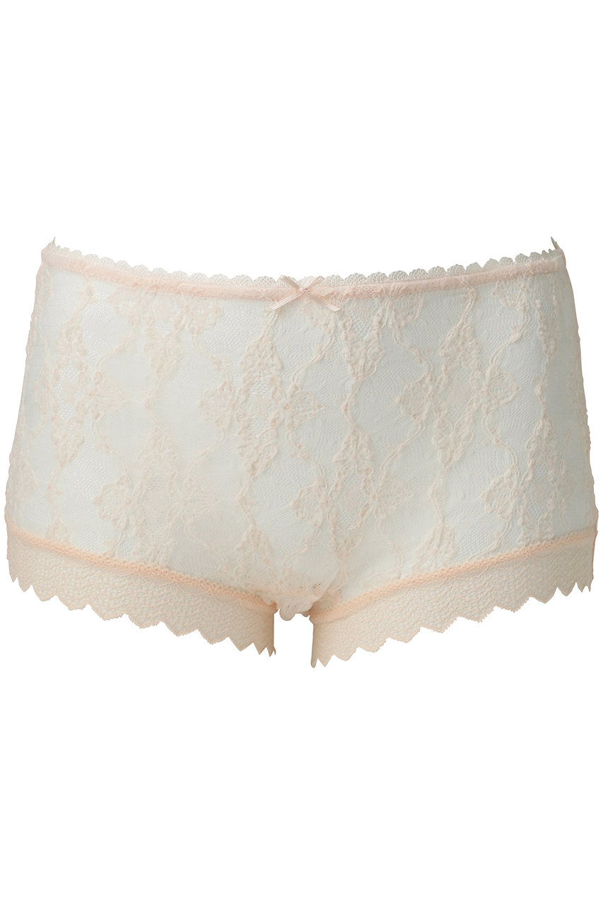 軽やかなショートカルソンショーツ。お腹周りからヒップまで包み込みがよく心地よくフィット。シャーリングで肌当たりがソフト。裾のレースの伸びもよくはきやすさも抜群。