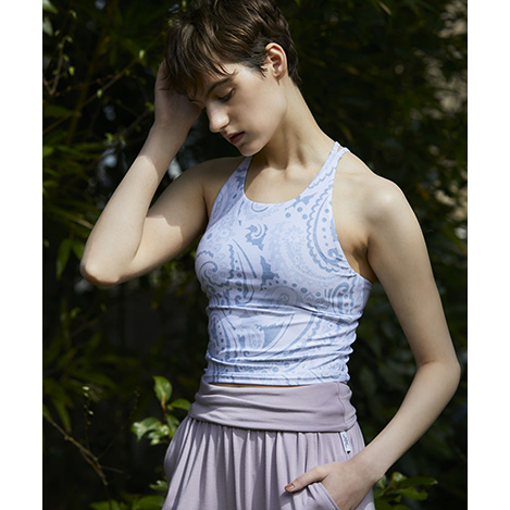 「ジュリエ」らしい優しい印象のプリントは、ワントーンでどんな色にも合わせやすい3色展開。ホットヨガ対応・UVカット(UPF50+)・吸汗速乾など、ジュリエのプリントアイテムは高機能素材を使用しています。