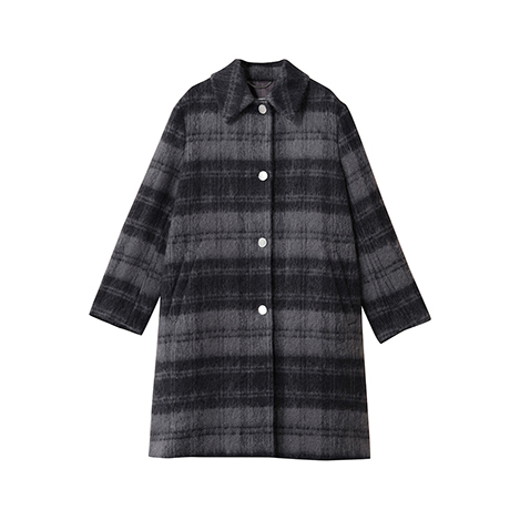 大人かわいい秋冬スタイルを演出してくれる、ロングスリーブのコート。シックなチェック柄と、シャギーな起毛感のある風合いとのコンビネーションが魅力的。襟デザインとメタルボタンのあしらいで上品見えする1着だから、オンオフ問わずシーンレスで重宝すること間違いなし。