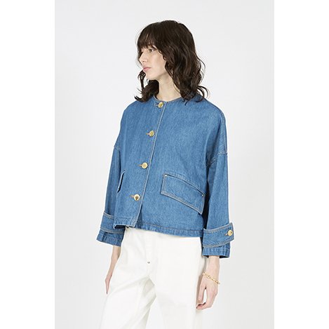 HUMBIE ノーカラーデニムジャケットメタルボタン