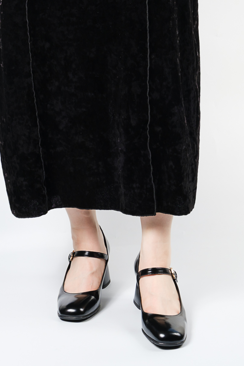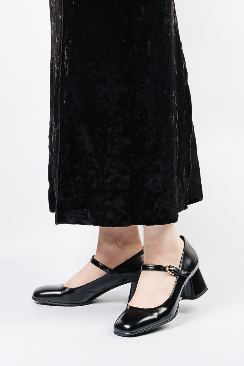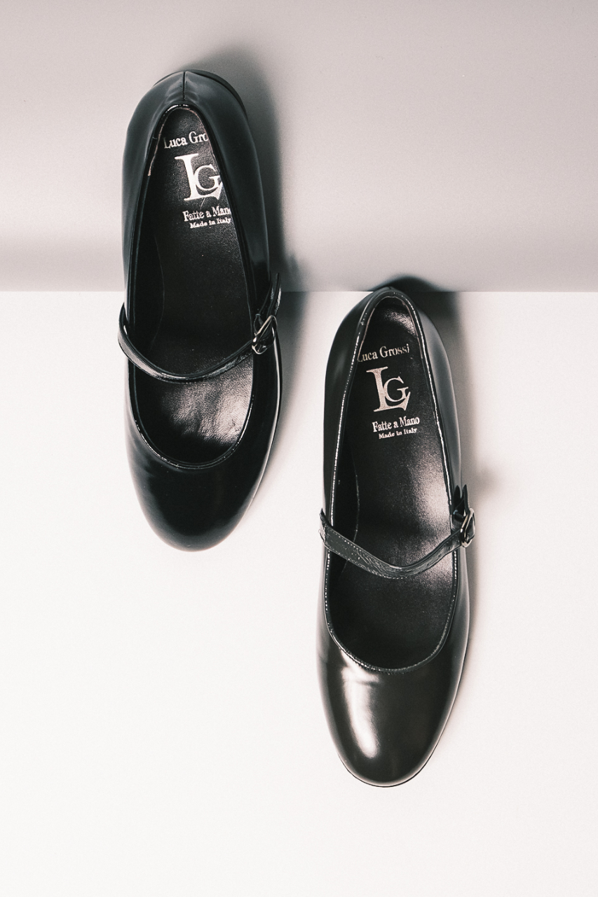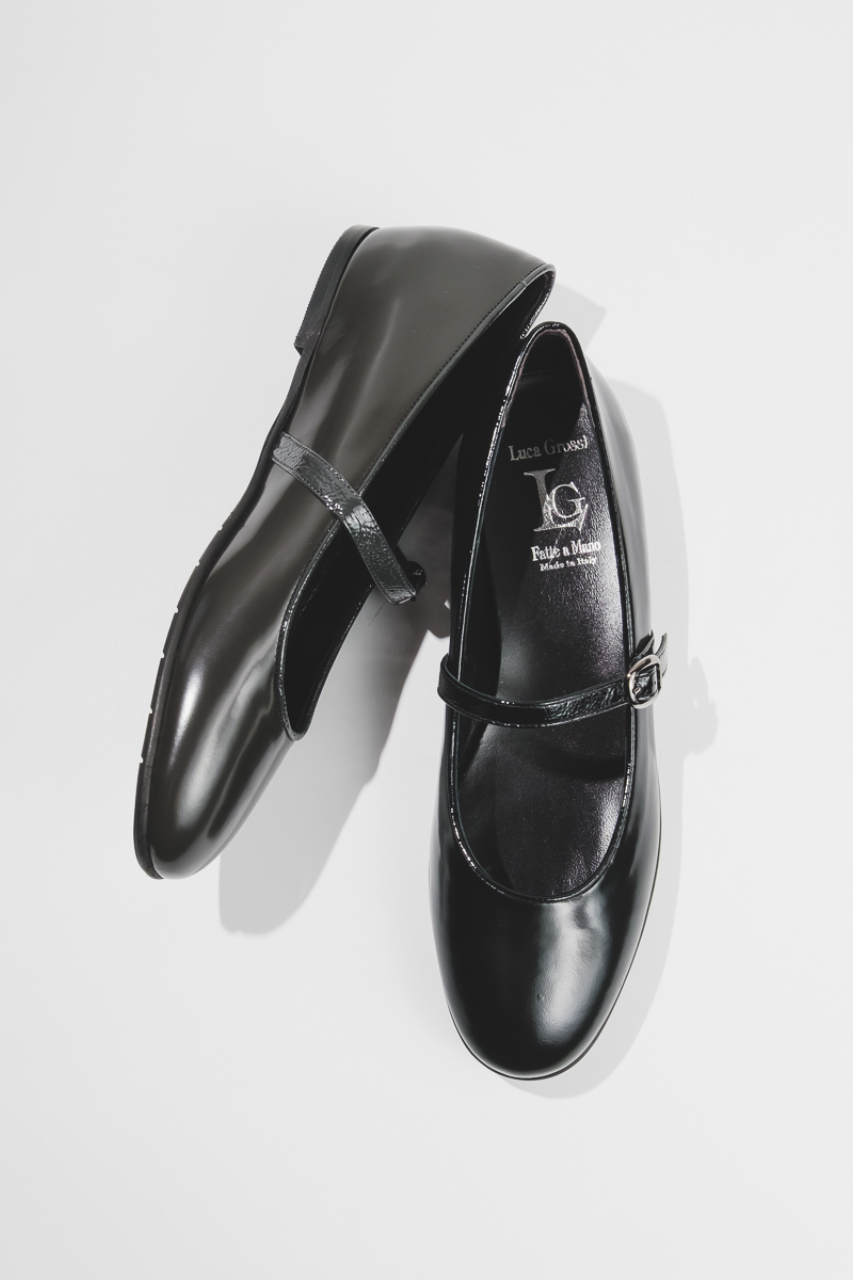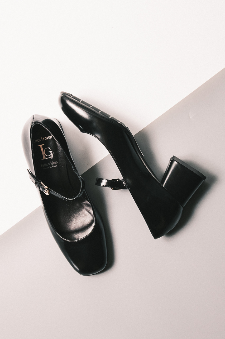 クラシックなメリージェーンを、艶やかなレザーで上品に仕上げた1足。