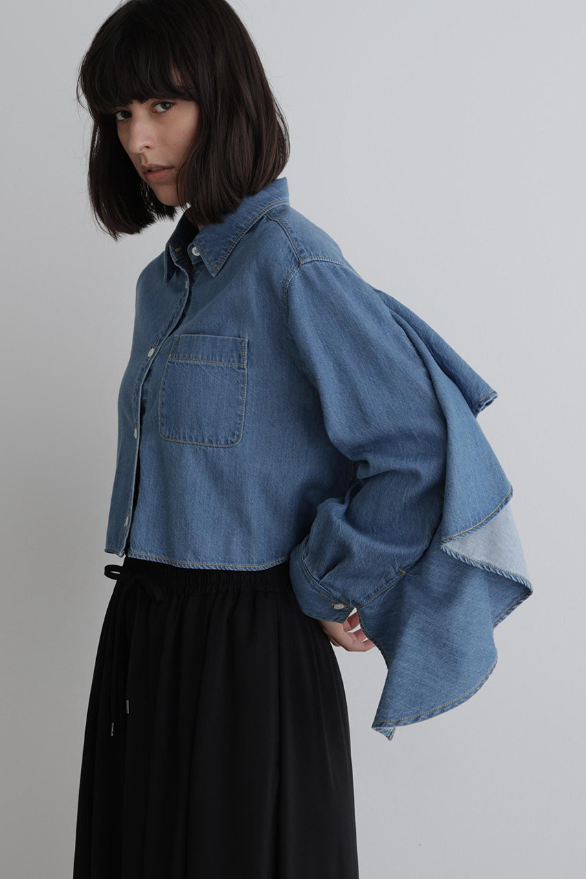 通常のデニムより軽やかなライトオンスデニムを使用したカジュアルながらもフェミニンな印象のブラウスです。