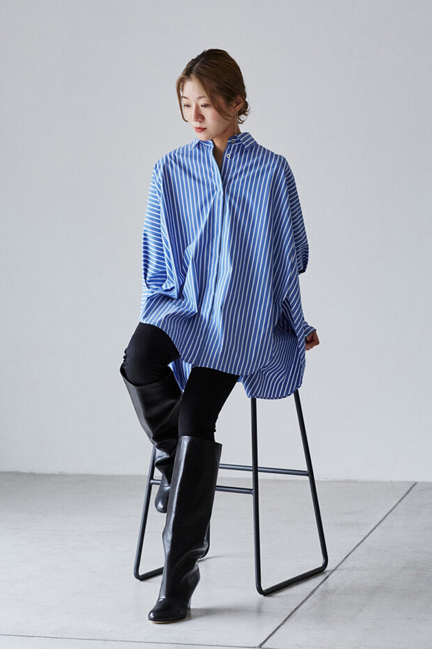 たっぷりとした分量感と、構築的なシルエットが魅力のオーバーシャツ。