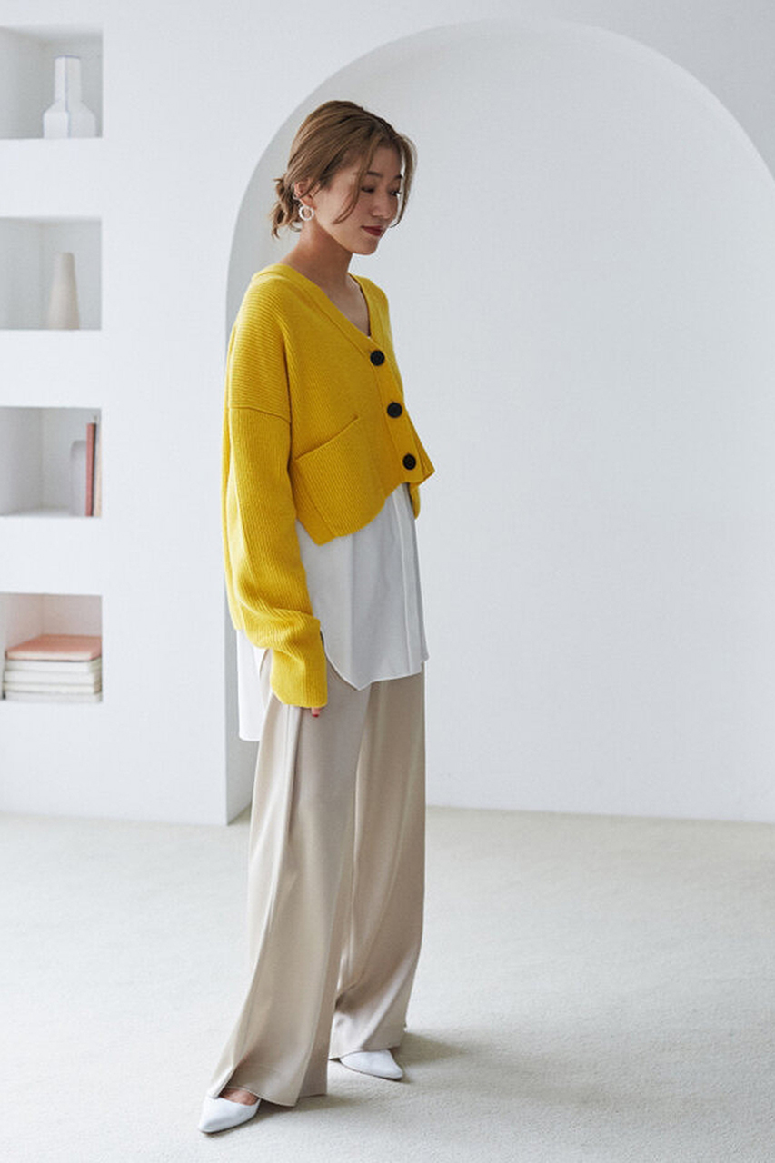 前後差のあるウールコンパクトカーディガンに合わせて、レイヤードスタイルを引き立てる、高機能素材SOLOTEXのキャミソールトップを。