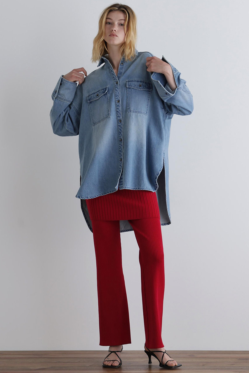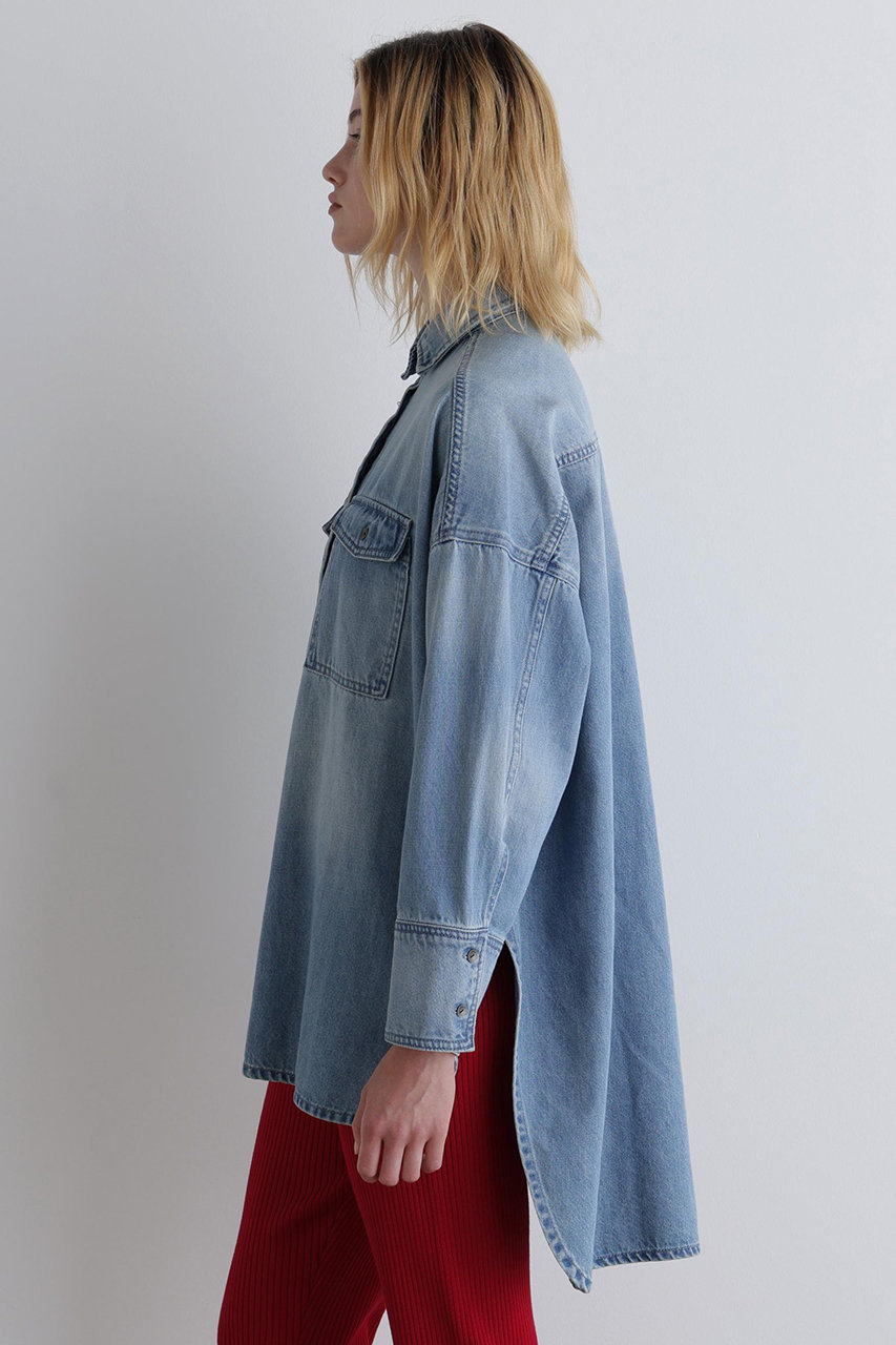 丁寧にウォッシュをかけた柔らかなデニム素材は、肌なじみが良く快適な着心地。1枚でさらりと着るのはもちろん、タートルネックニットとのレイヤードや、ワンピースの上の羽織りとしてもロングシーズン活躍。