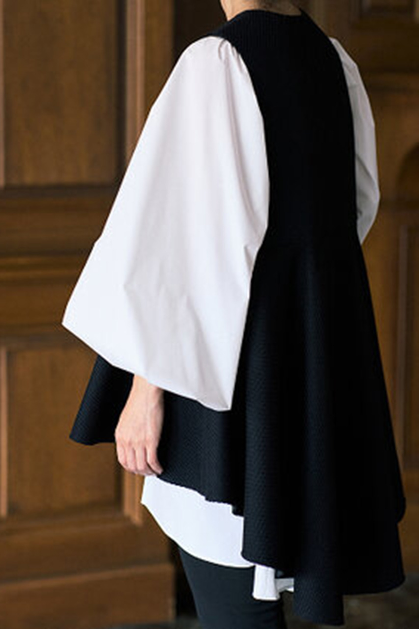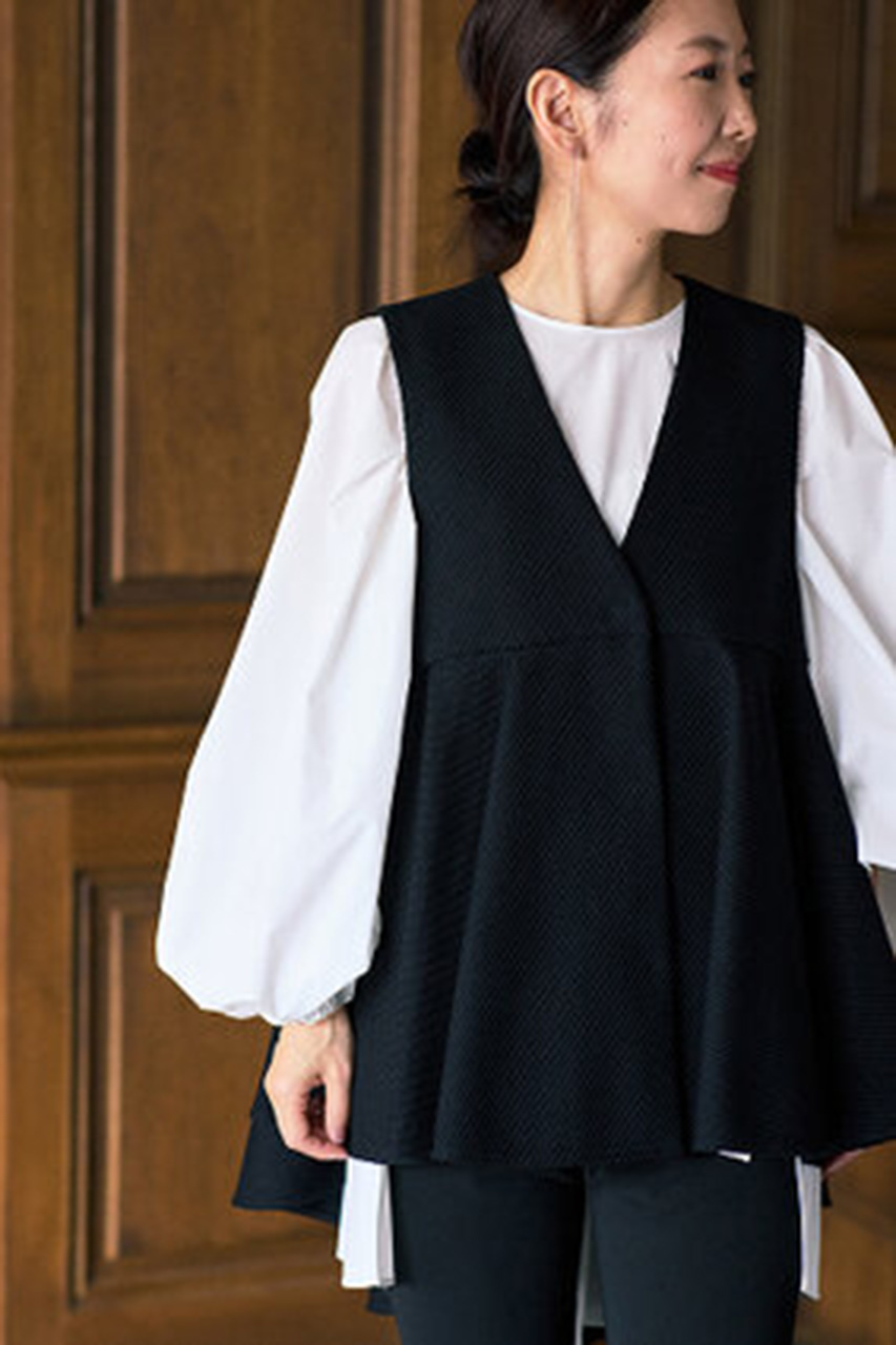 大胆なフレアの前後差が美しく揺れる、表情豊かなジレ。