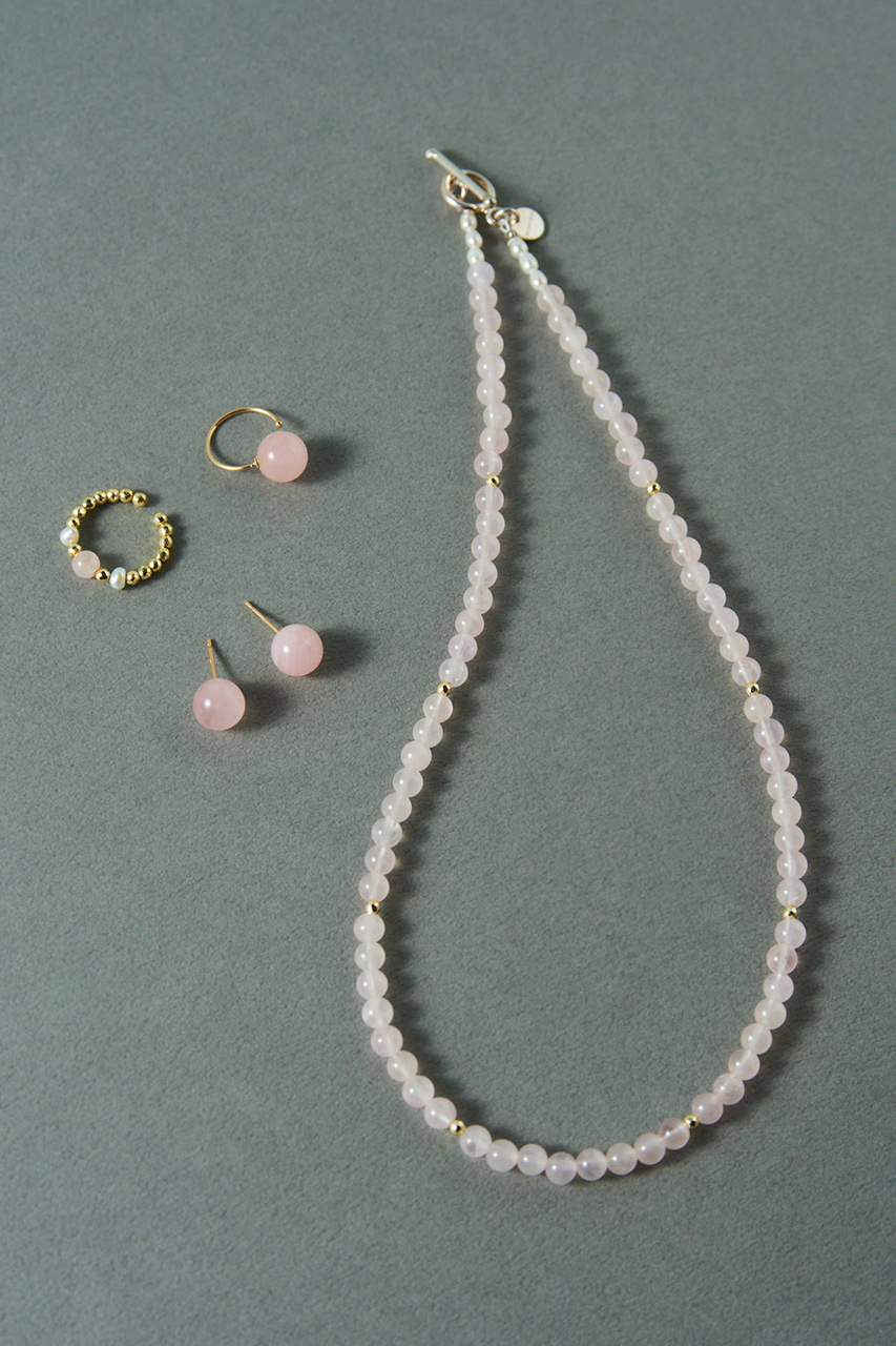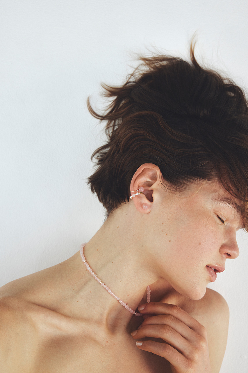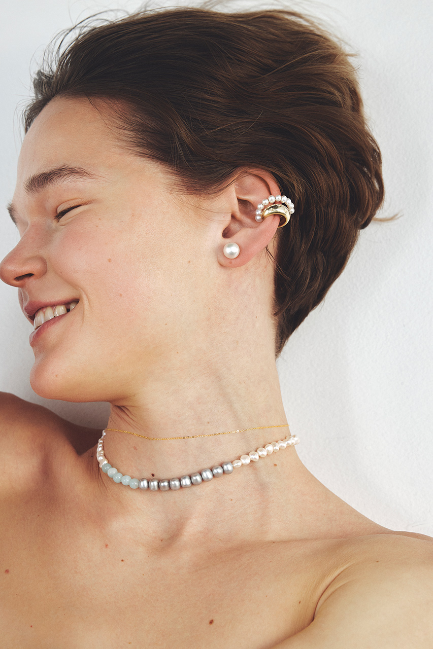 淡水パール×天然石がしなやかなグラデーションがデコルテに浮かぶように映え、表情を明るく演出。立体的なフォルムとゴールドヘマタイトのソリッドな輝きで、個性と存在感を叶えます。K10のチェーンネックレスとレイヤードすれば、より奥行きと洗練感のある仕上がりに。