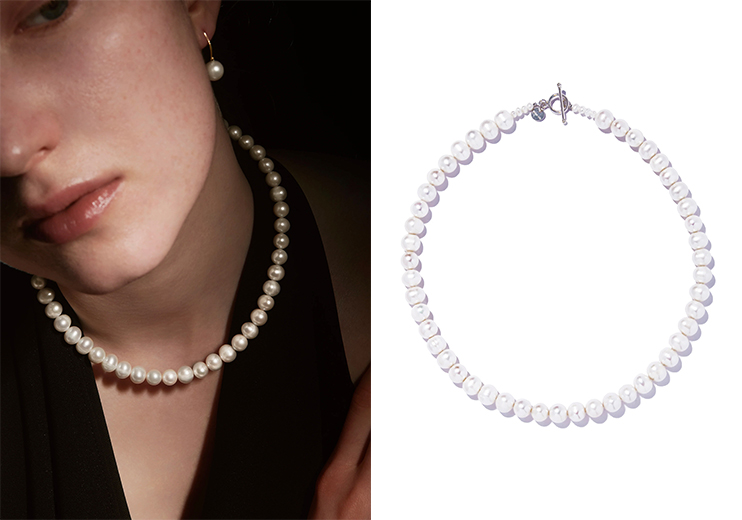 柔和でクリーンな淡水パールの白が、肌をいっそう美しく表情を明るく見せてくれるネックレス。