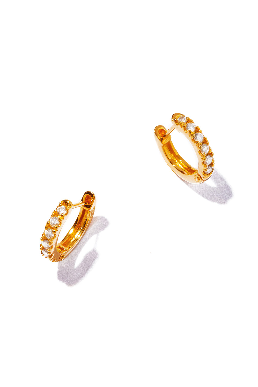 オーラを纏うフープピアスは、K18のフープにダイヤモンドを散りばめたリュクスな仕上がりです。