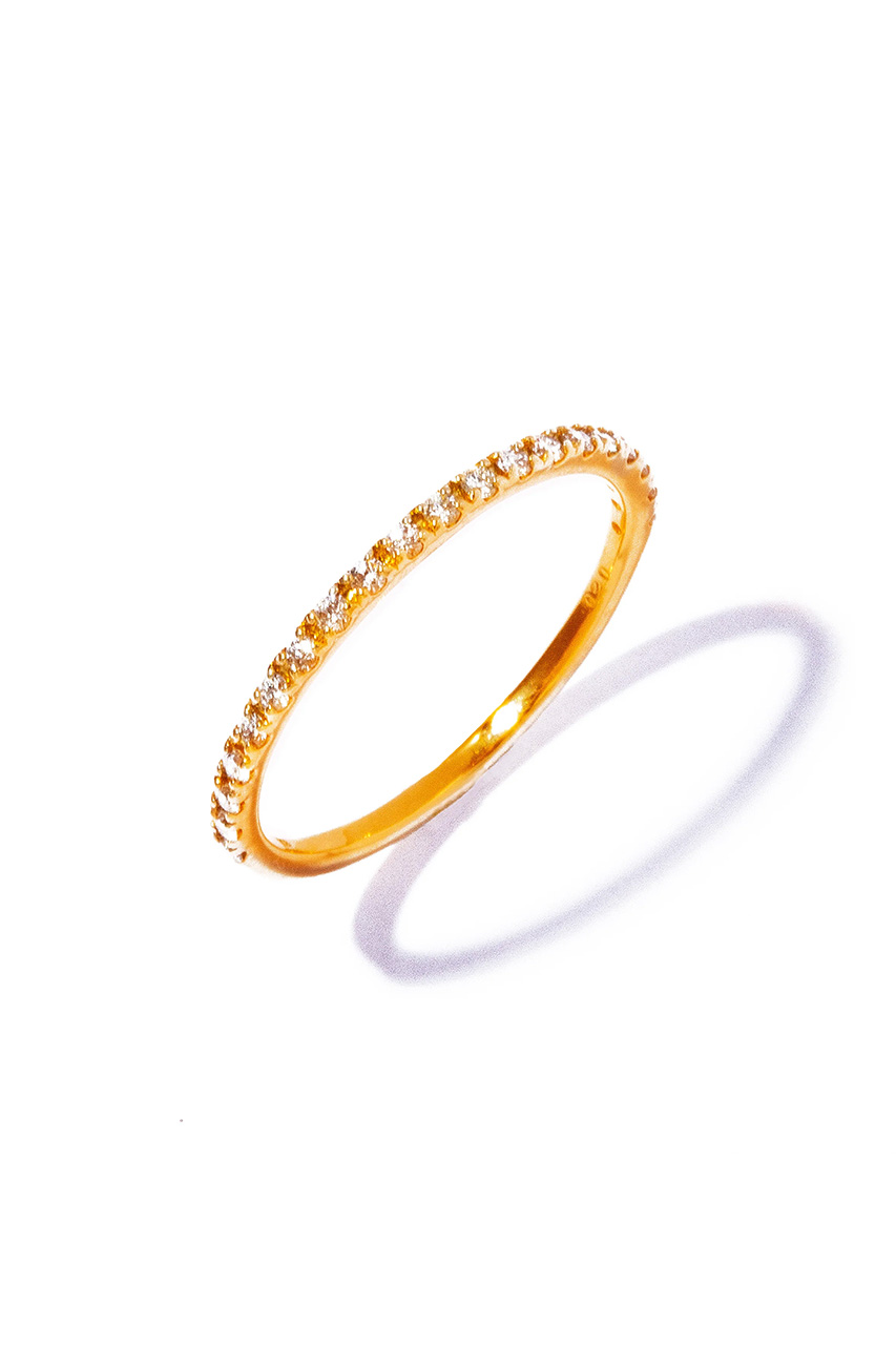 K18のリングの半周にダイヤモンドを配し、華やかな輝きをまとわせた特別なデザイン。