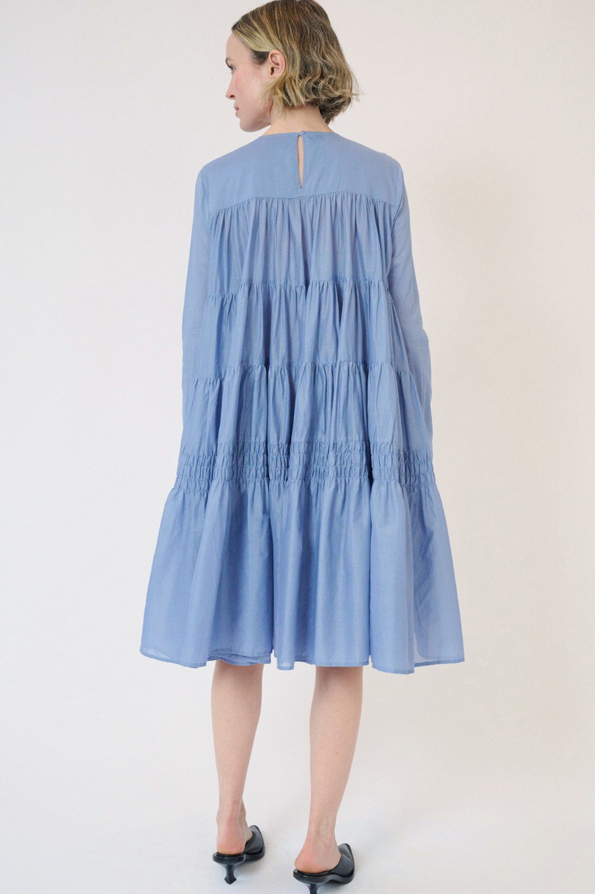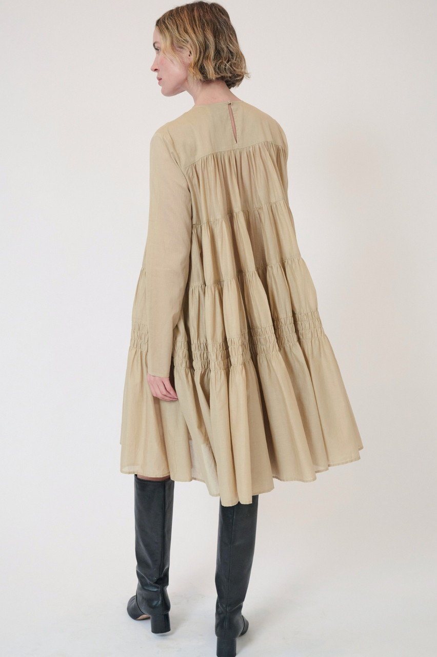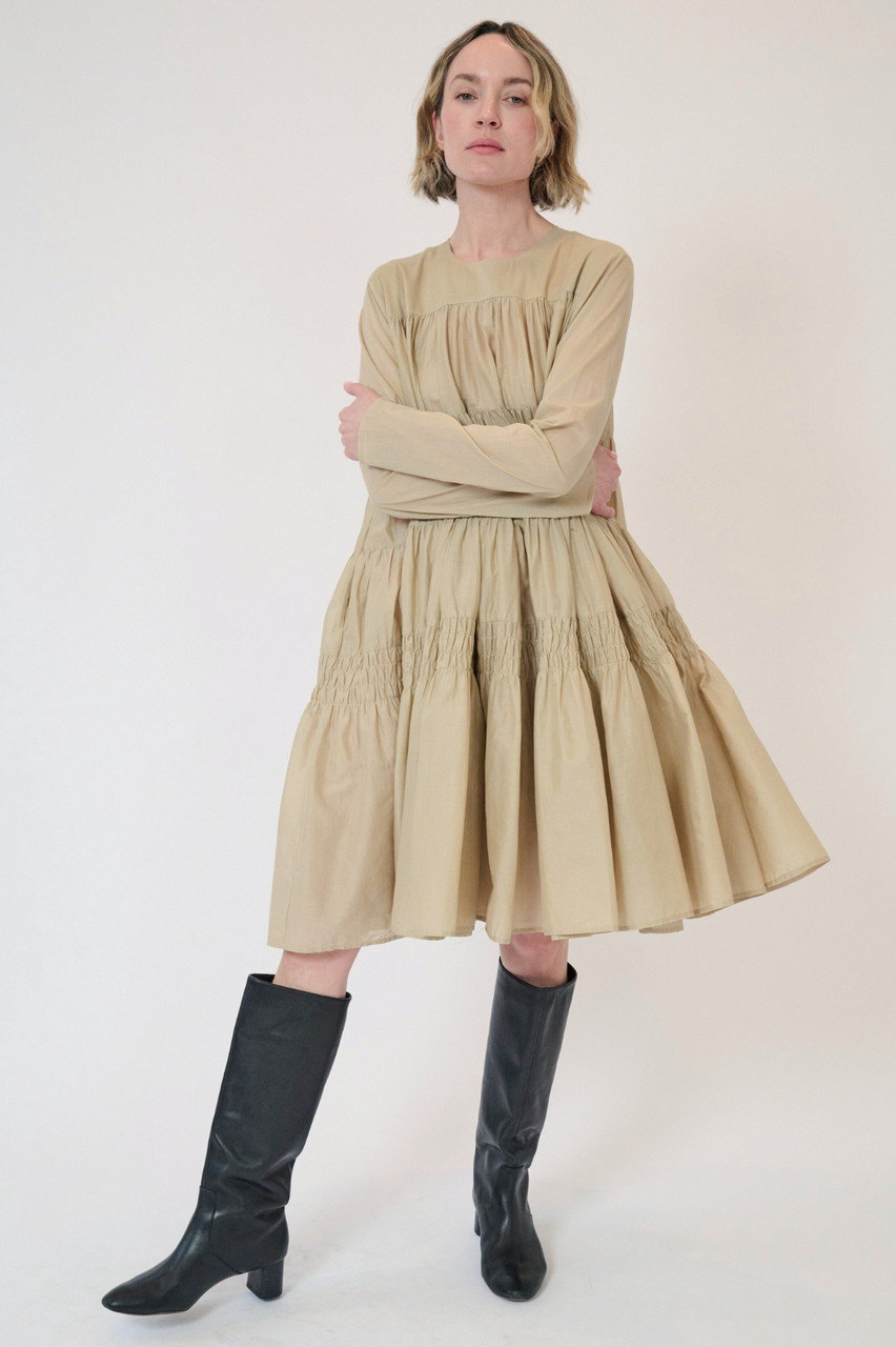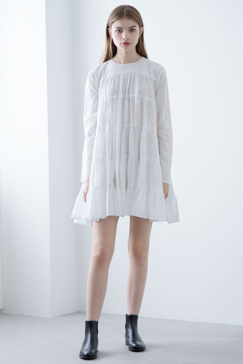 「マーレット」からこの秋の新定番“SOLIMAN MIDI/ソリマンミディ”をご紹介。選び抜かれた上質なコットン素材、贅沢にあしらわれたティアードと繊細な刺しゅう、すべてが計算し尽くされた大人のためのドレスです。定番の“SOLIMAN”よりも長いフレアシルエットが動きに合わせてゆらめき、歩き姿も優雅に。このミディ丈が一枚でも着やすい、と人気を呼んでいます。
