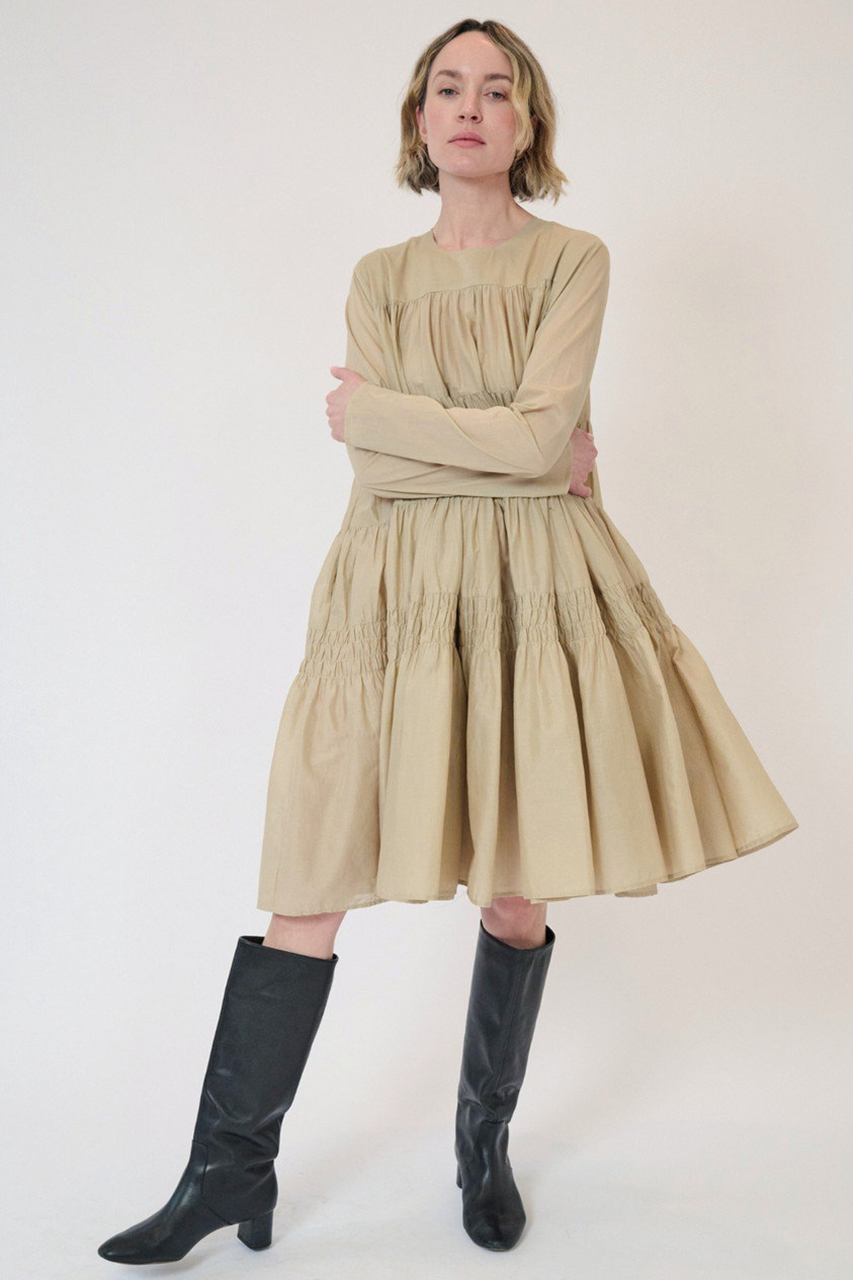 たっぷりボリュームのティアードが多幸感に包まれる、ホリデーシーズンのお出かけにぴったりのドレスです。