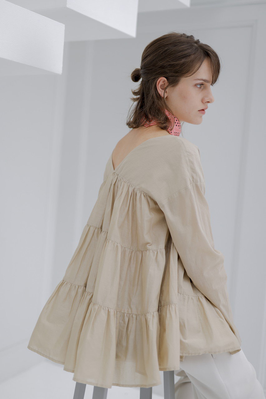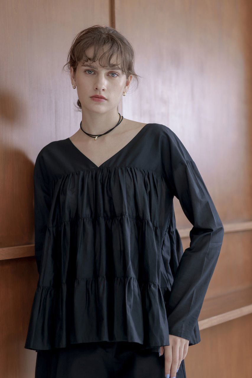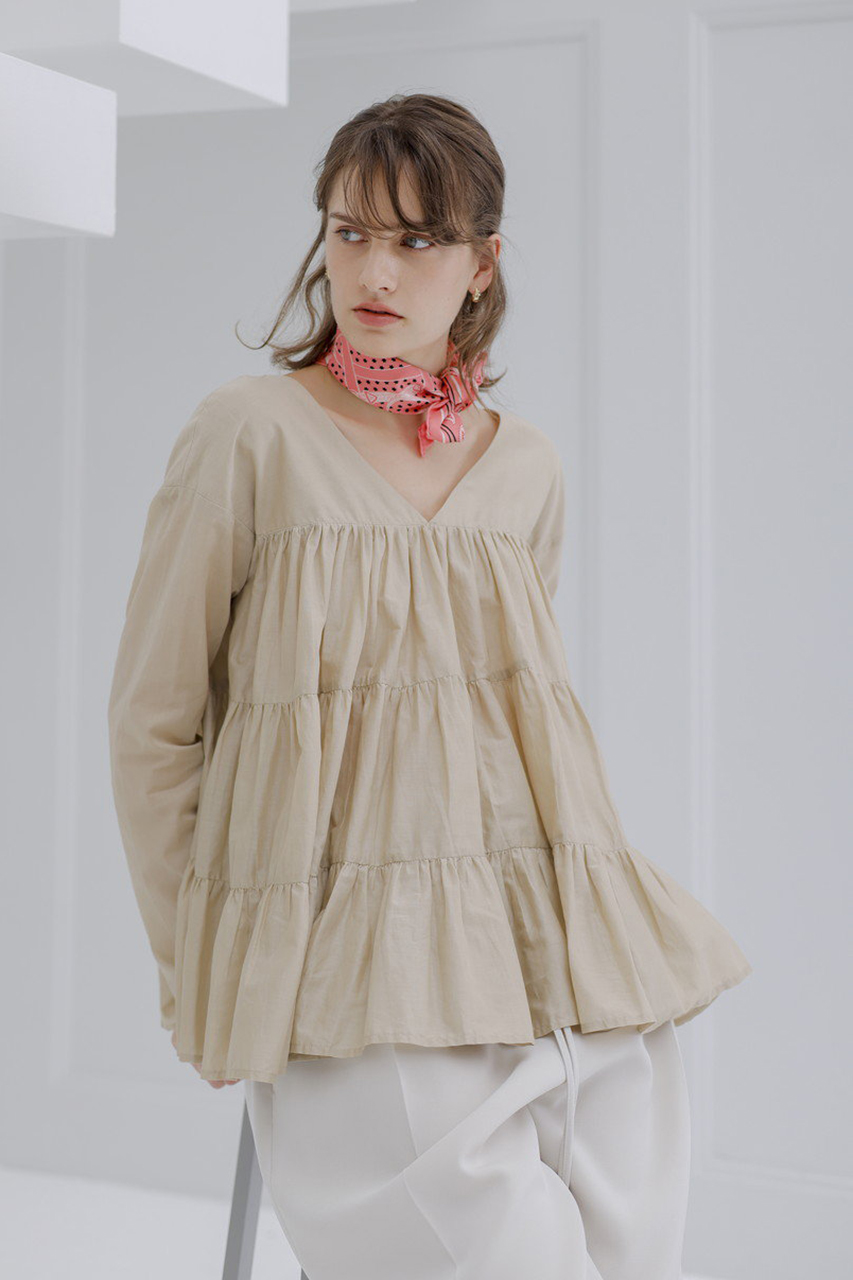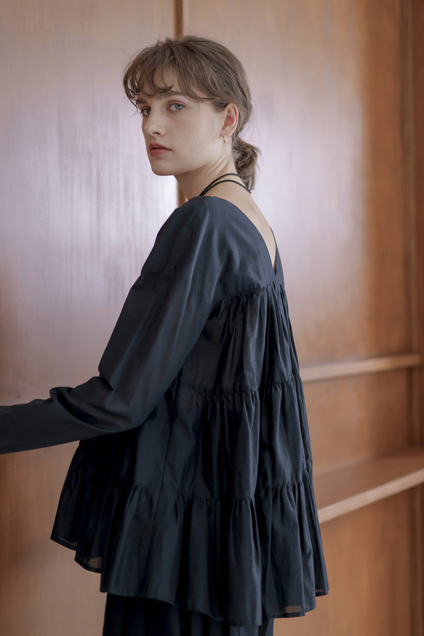 「マーレット」のシグネチャーであるティアードをあしらったブラウス。