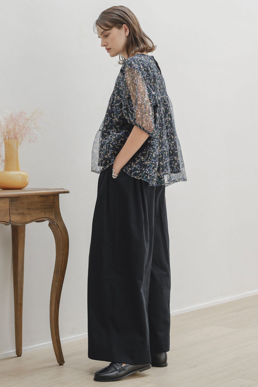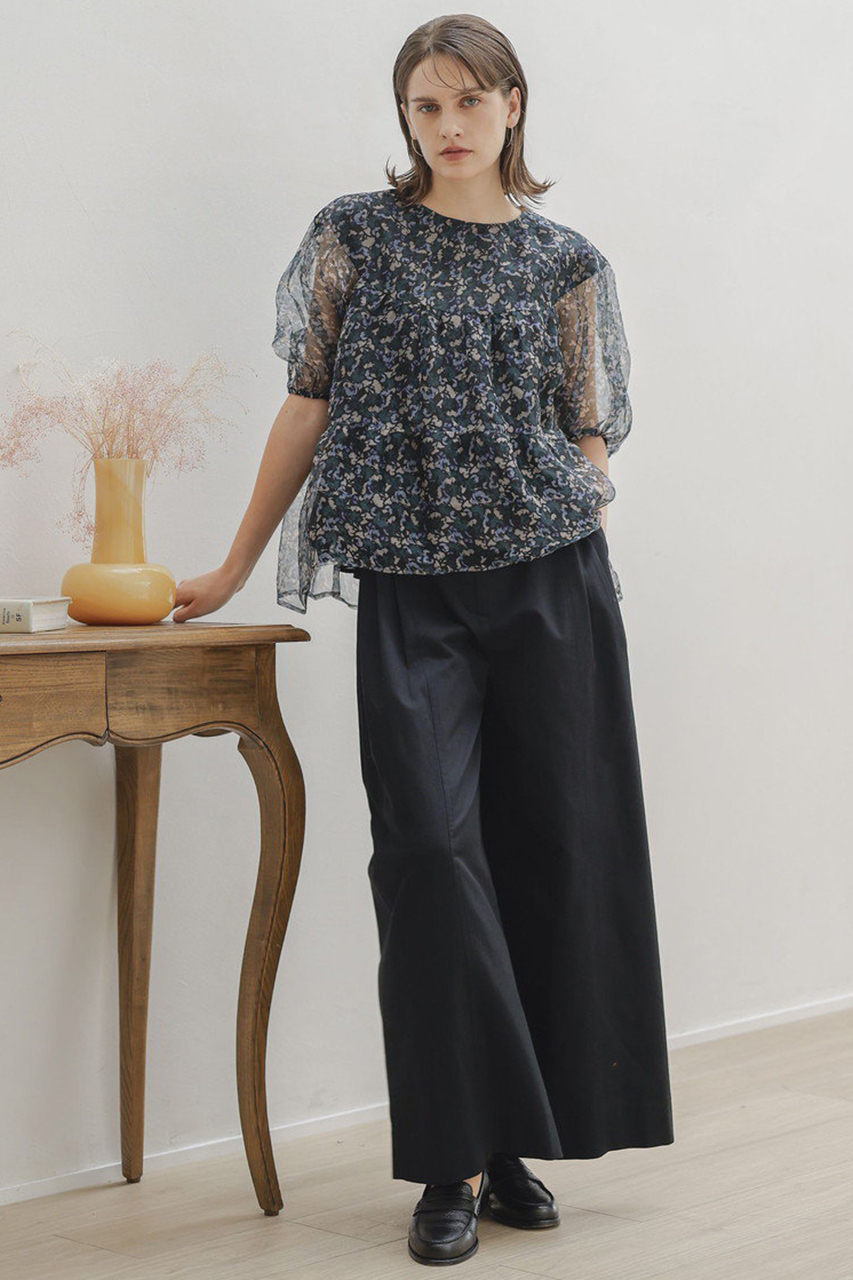 「マーレット」オリジナルのフラワープリントが上品で洗練された印象を引き立たせるブラウス。