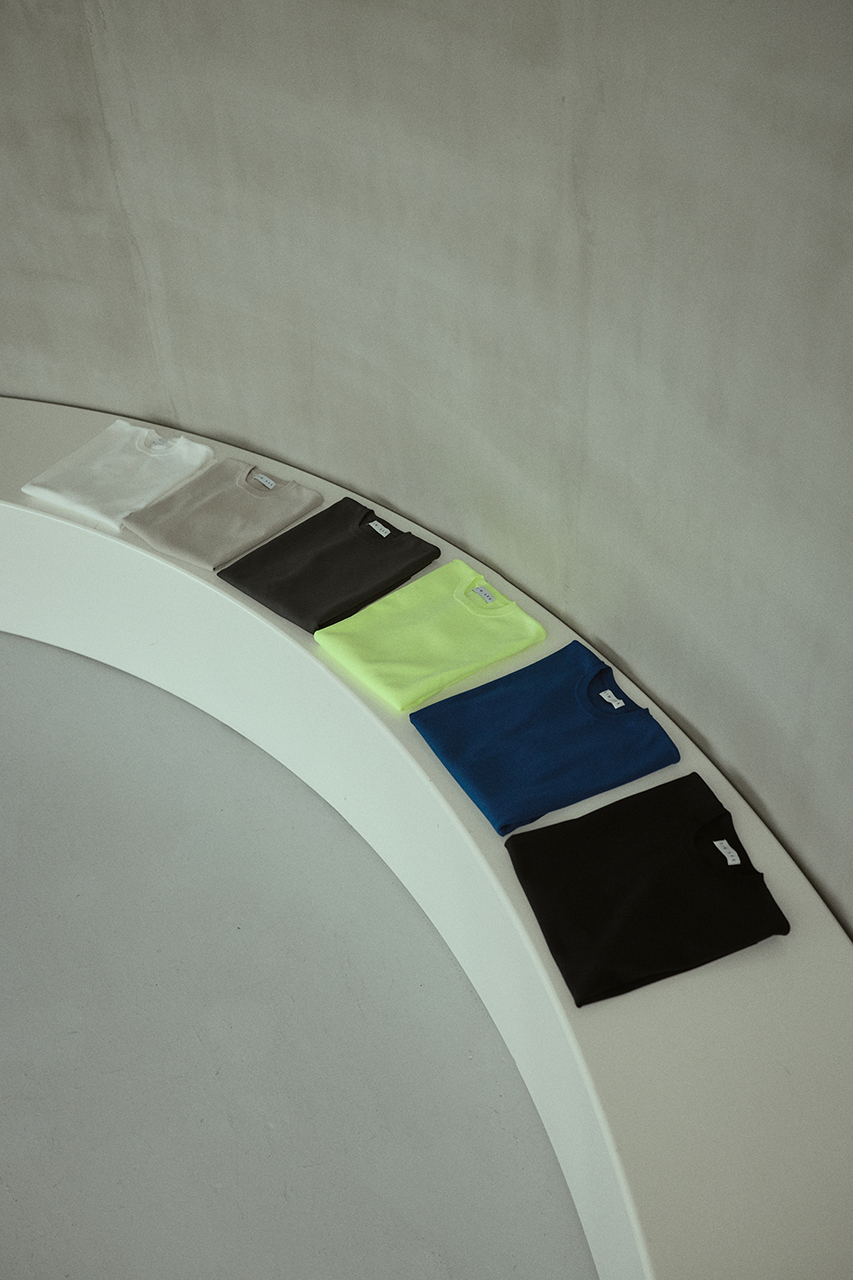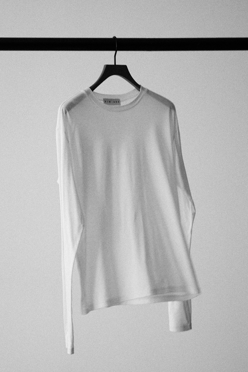 独特の滑らかな質感を持った高級超長綿ギザとリヨセルを混紡することで実現した、しっとりとした風合いと柔らかな肌触りが快適なスムースを使用。程良い光沢と艶が美しく一枚でサマになるのはもちろん、袖を長めに設定し、ニットやスウェットとレイヤードしてもこなれたスタイルが完成するように製作しています。