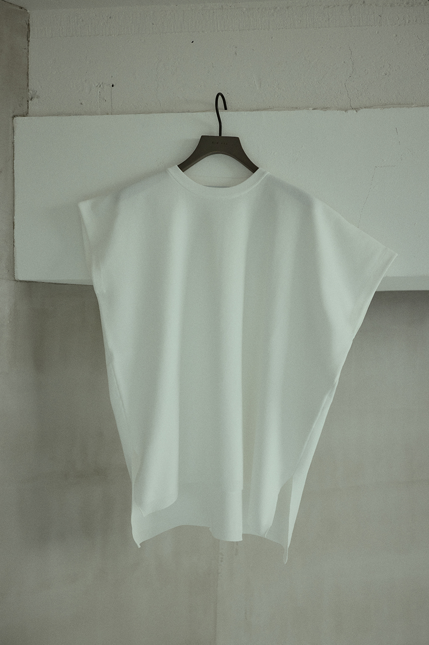 きれいな目面とアシンメトリーデザインがモダンなエッセンシャルアイテムとして夏のTシャツスタイルを格上げしてくれるAsymmetry knit topsは、ビックリするほどの軽さもポイントの一枚。アシンメトリーのバランスのみで魅せたデザインはシンプルで何にでも合わせやすい万能アイテムなので、色違いで揃えたくなります。