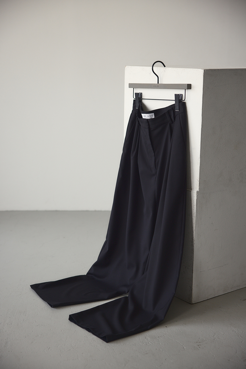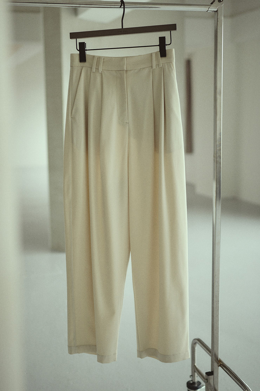 イージーケアでシーンを選ばず、オールシーズン対応できる素材感です。深めに入ったWタックとややテーパードになったワイドシルエットで、生地のドレープ性を生かしたマニッシュなパンツは、普段のスタイリングをカッコ良くブラッシュアップします。