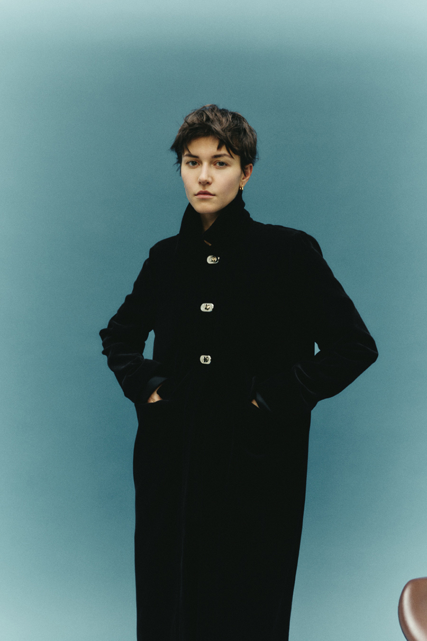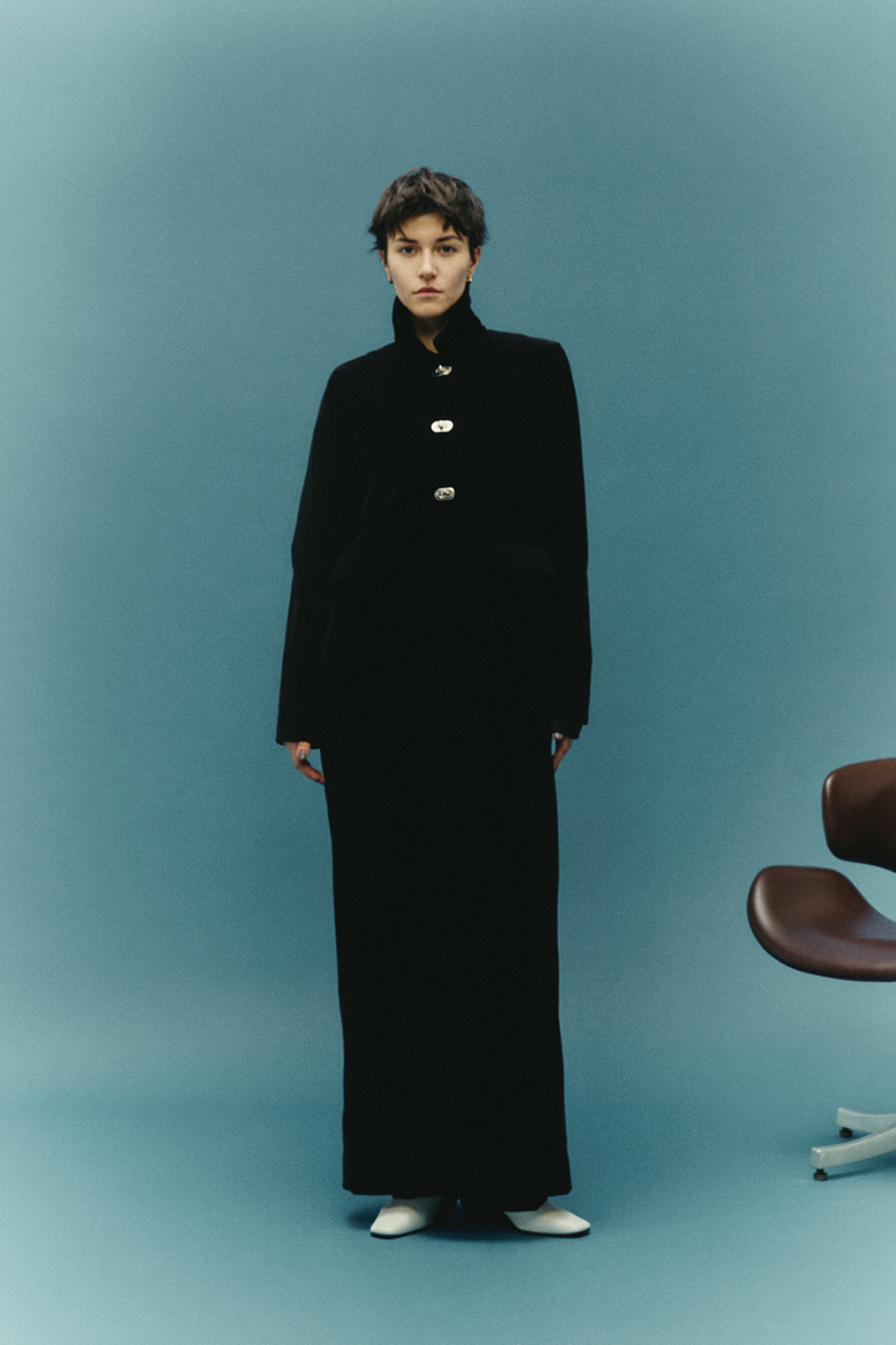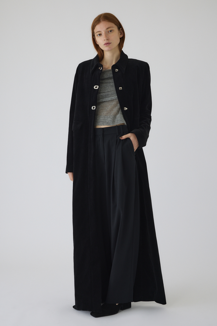 中肉厚なコットン・レーヨンのコーデュロイ生地を使用し、RIM.ARKらしいシックでモードなジャケットを製作。マキシ丈でワンピースのような存在感を放ちます。フロントのTロックの金具ボタンがポイントで、より特別感のある1着に。アウターでありながら、ワンピース感覚で着用できるデザインです。マキシ丈で存在感があり、スタイリングの主役になるアイテム。