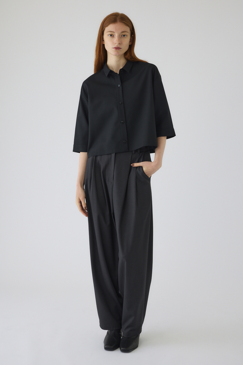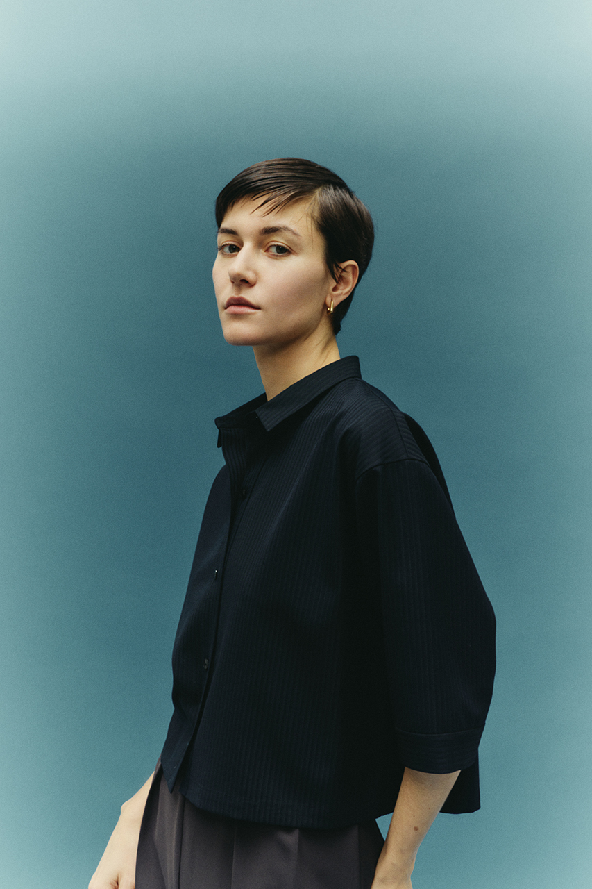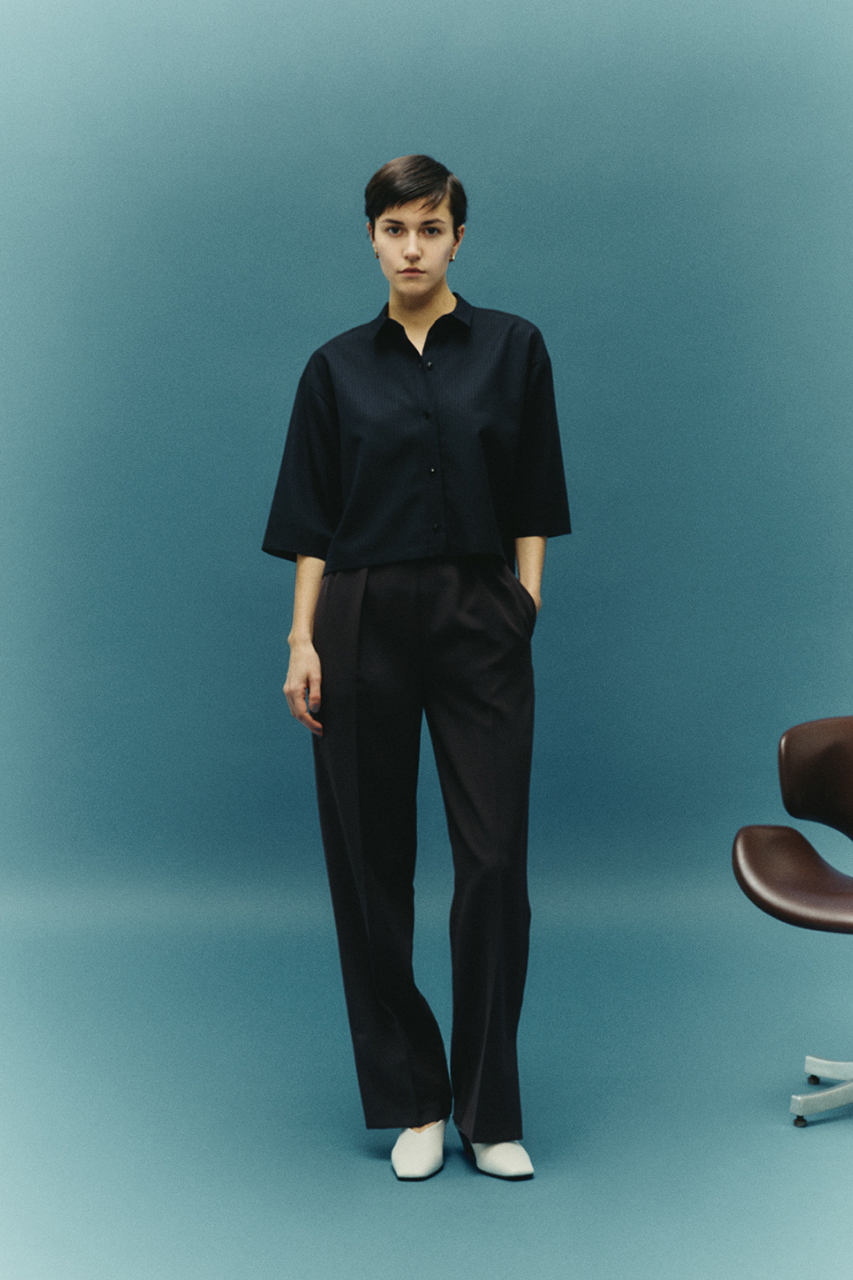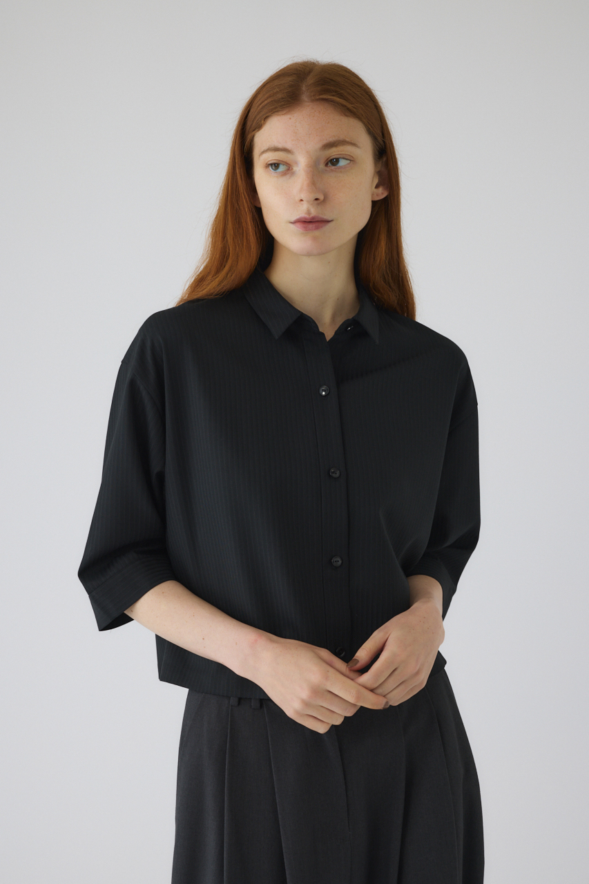毛羽感を抑えたクリアな表情のピンストライプがモダンな印象を与え、着るだけで洗練されたオシャレが完成する一枚。大人が着れるショートシャツとして品格を感じる仕上がりです。袖丈は長めのひじ丈にして品格を演出。どんなボトムスともバランスのとりやすいサイジングにこだわりました。オンオフ問わず上品なスタイルが完成するアイテム。