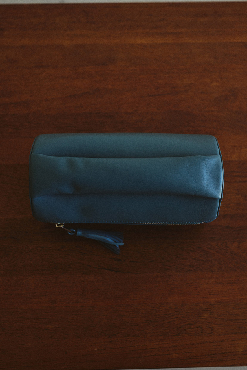 アクセサリー感覚でコーディネートに取り入れられる、ユニークなドラム型フォルム。揺れるフリンジが着こなしのアクセントになります。上品な本革で製作したクラッチバッグ。引き手には動きのあるフリンジをプラス。