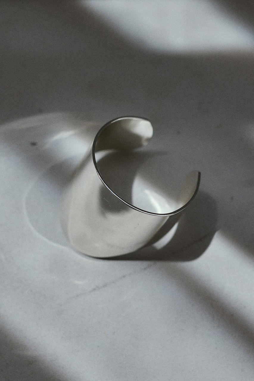 存在感がありながらも主張しすぎないミニマルなデザインで、どんなコーディネートもスマートに引き締めてくれるバングル。