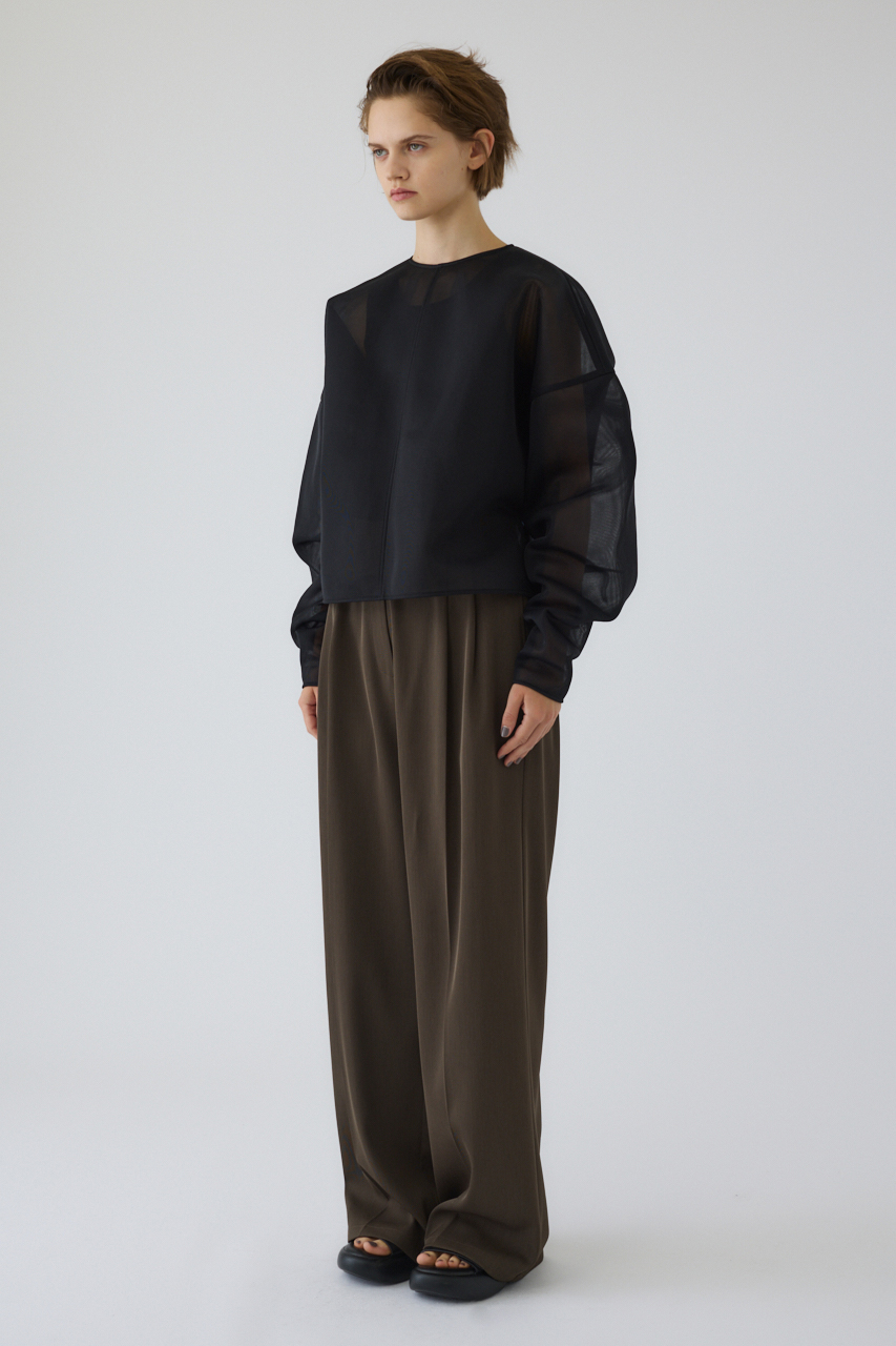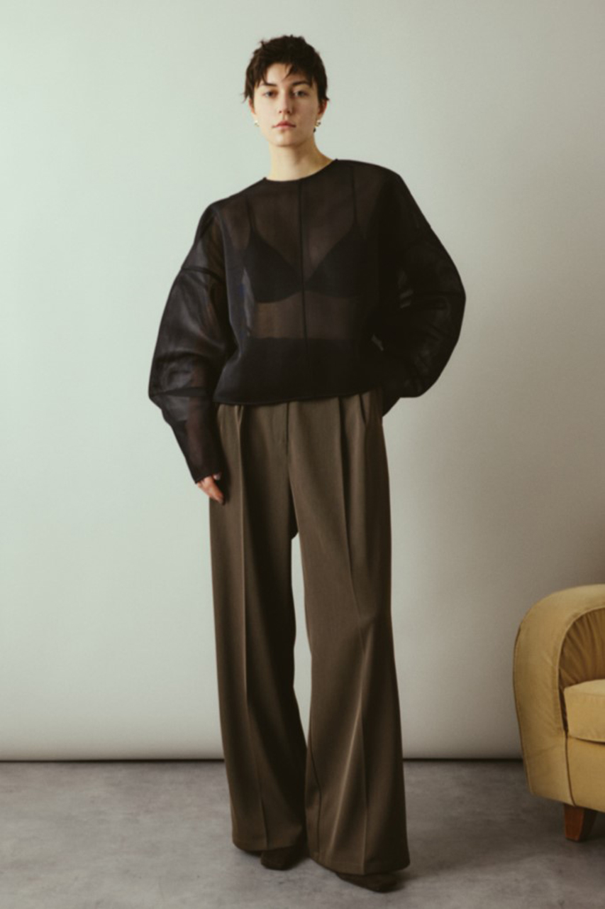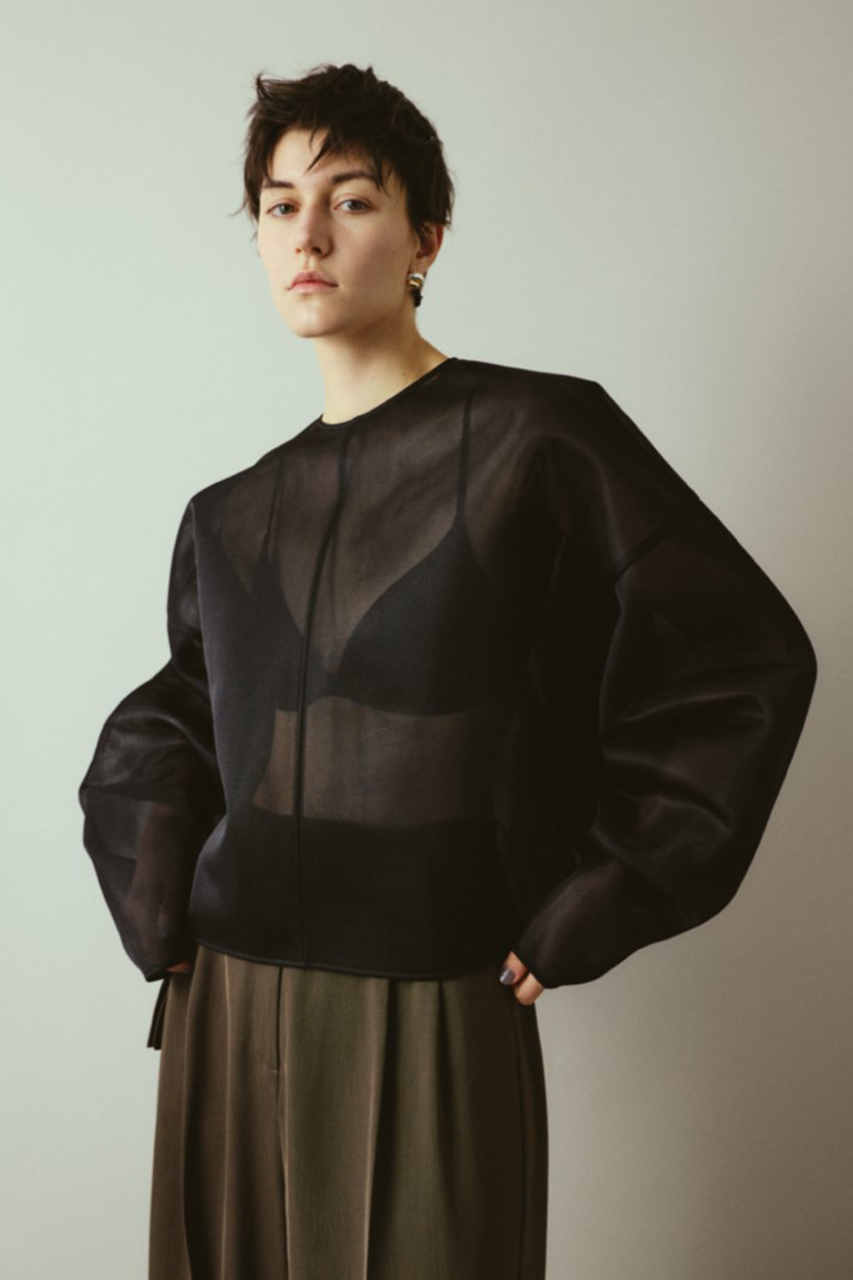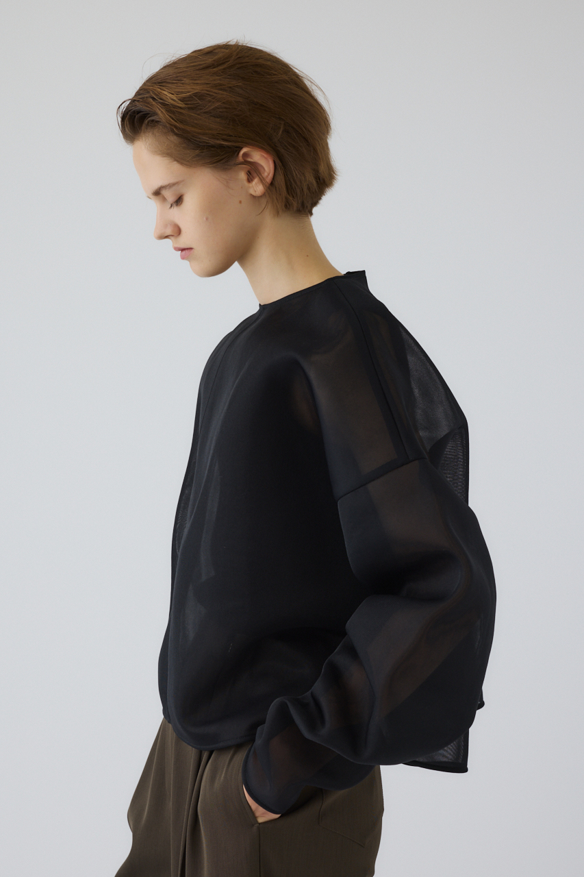 3層構造のダブルラッセルでクッション性と通気性を高め、メッシュ特有のカジュアルさを感じない高級感のあるプルオーバー。生地のハリを活かしたオーバーサイズとロングスリーブで洗練されたスタイルを確立。品のある透け感で大人の抜け感を演出します。サイズシルエットを活かしたリラックススタイルに。