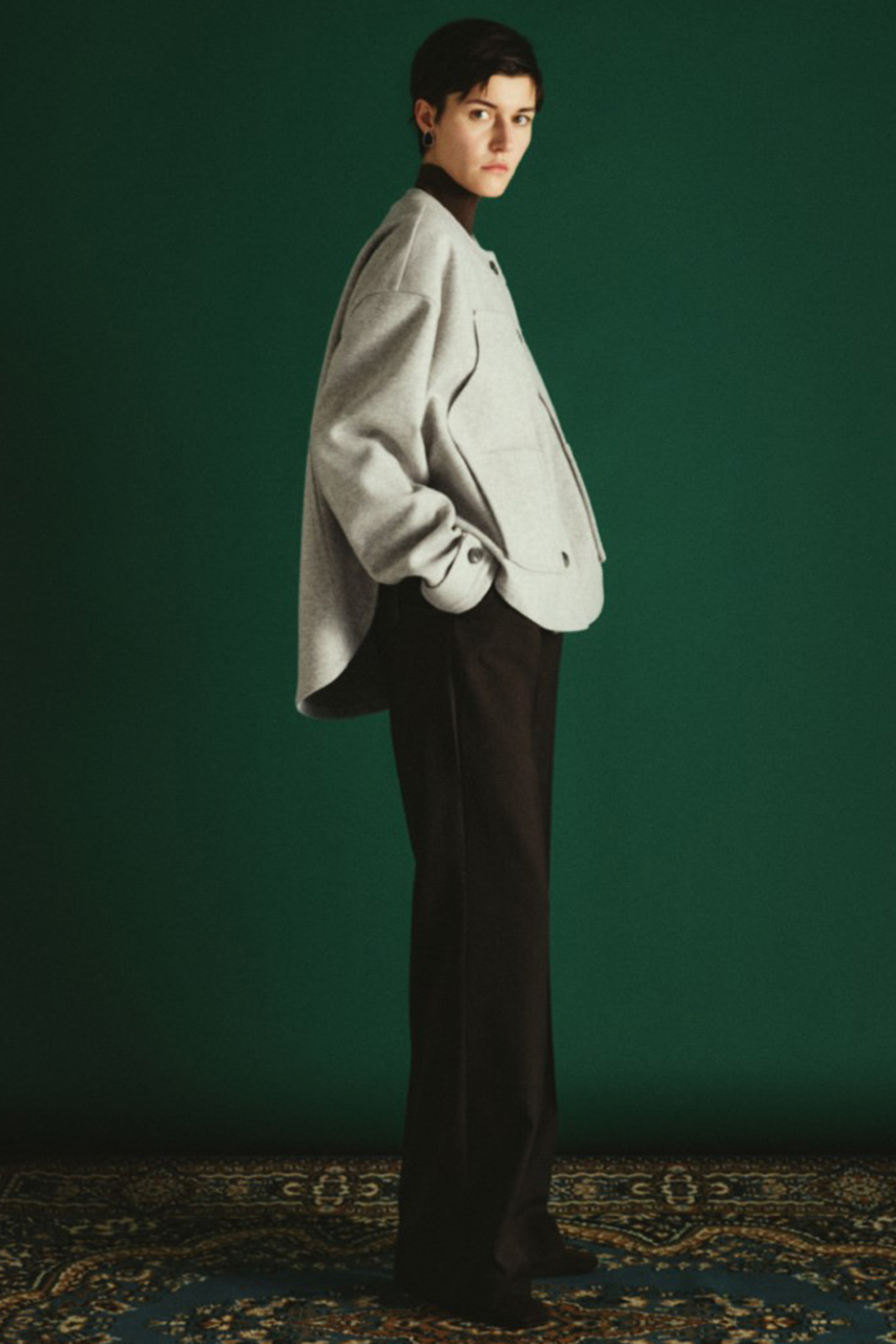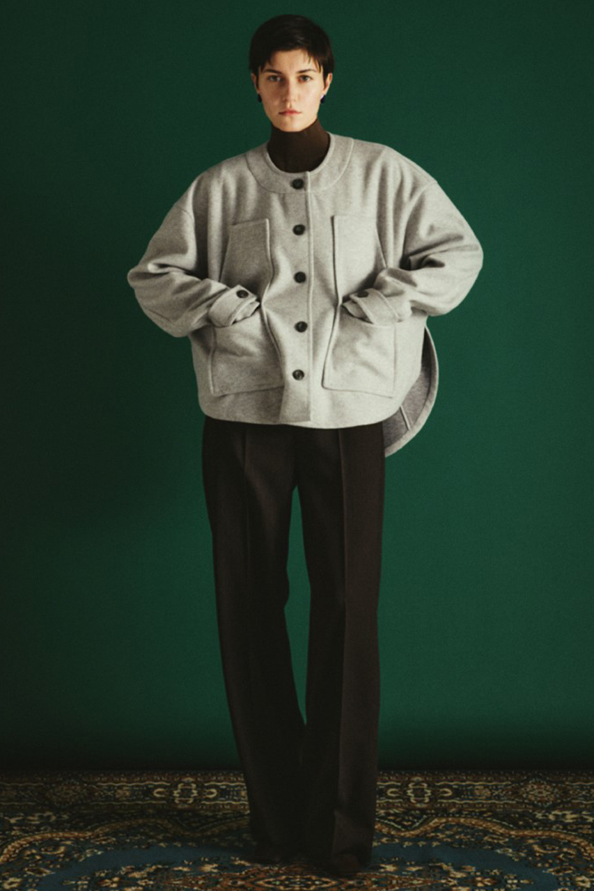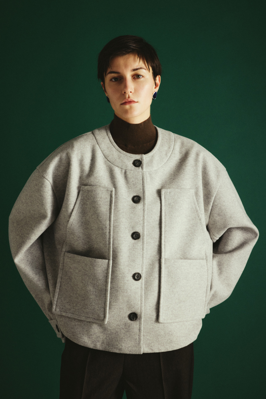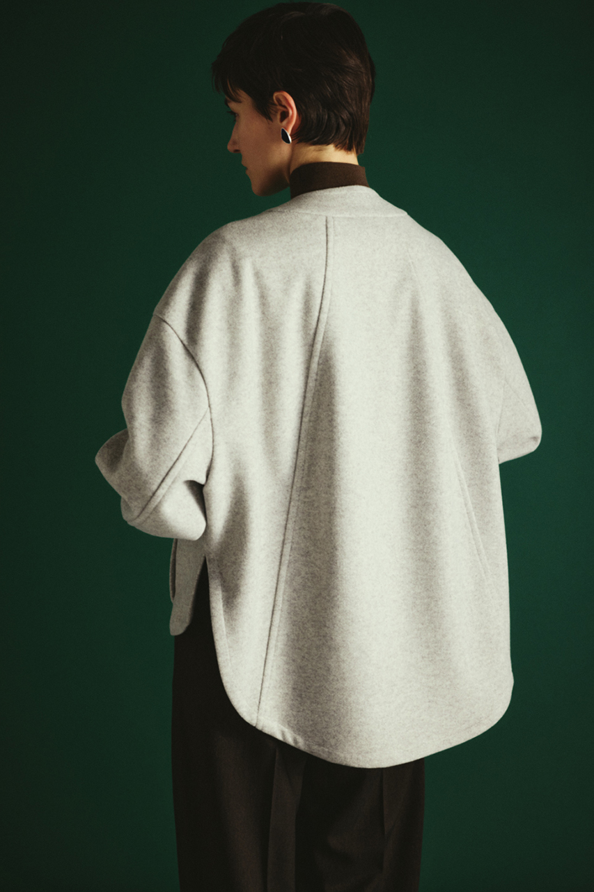 ニードルパンチ加工を施したウールライクなジャージ生地で製作したブルゾン。アウターの中にも合わせられる中肉厚で表情のある生地感が特徴。RIM.ARKの今シーズンのテーマである丸い曲線を描いたパターンが特徴的。バックロングのシルエットとすっきりとした首元でバランスの取りやすい設計。軽く羽織れるブルゾンでありながら洗練されたデザインで、レイヤードアイテムとしても活躍します。