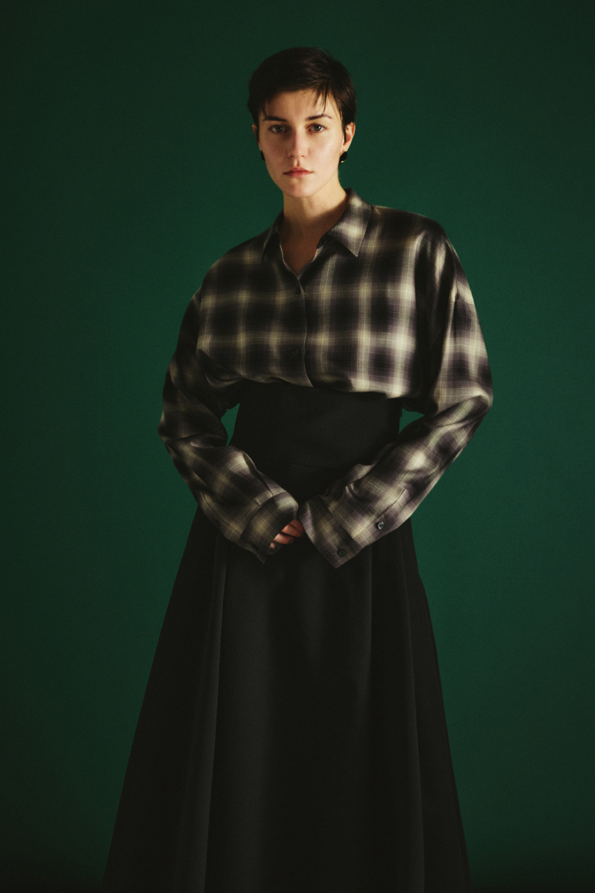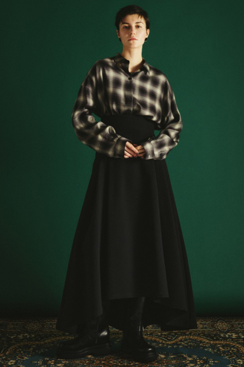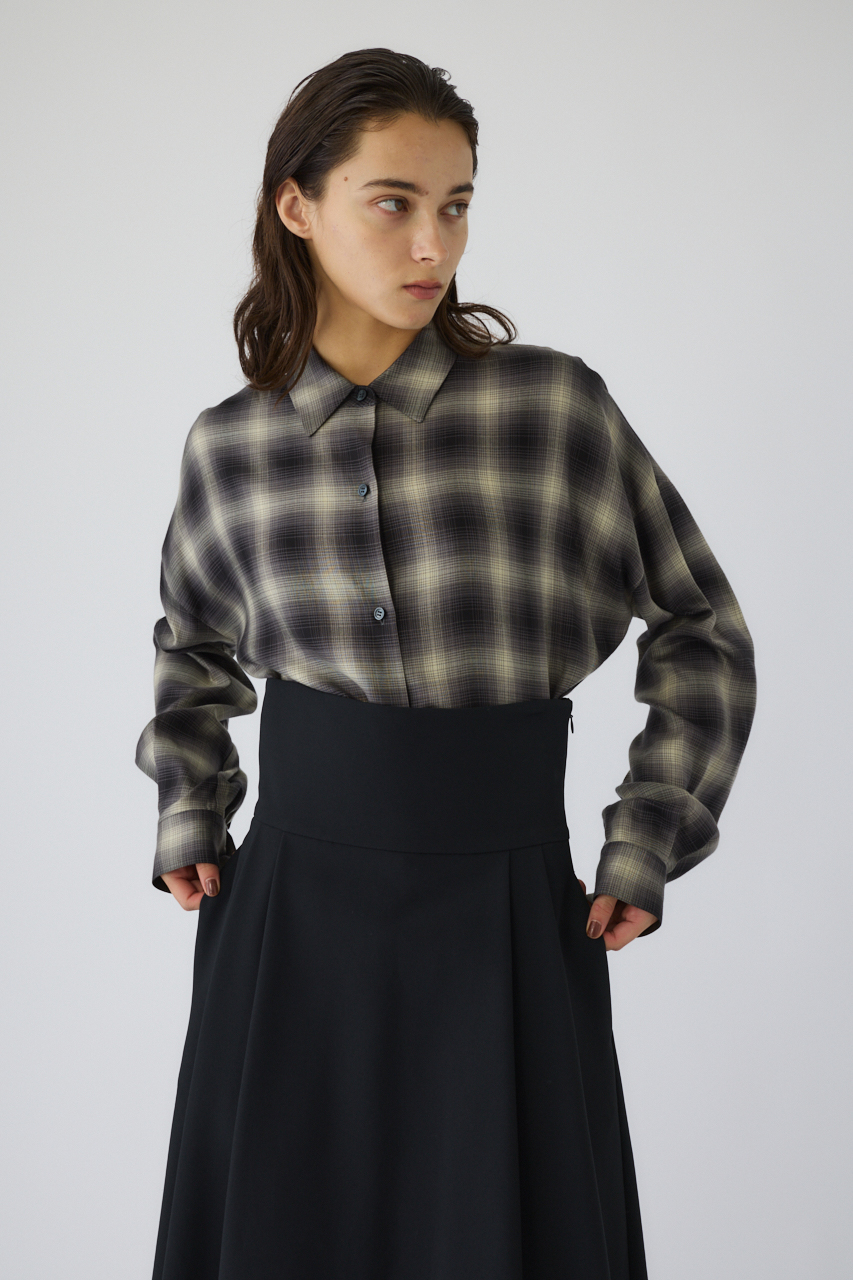 グランジのニュアンスと品のあるラグジュアリーな雰囲気を両立した、他と差がつくチェックシャツ。カジュアルながらもモードな印象で着用できます。こなれ感のあるオーバーサイズシルエットと重ね着もしやすい薄手の生地が特徴。一枚で着るのはもちろん、羽織りとしても活躍します。タックイン・アウトどちらの着こなしも様になるよう計算されたサイズ感です。メンズライクなシャツをあえてボリュームのあるスカートと合わせてレディに着こなすのが特におすすめです。Tシャツの上にラフに羽織ってカジュアルに着るのはもちろん、ボタンを留めてスラックスにタックインすれば、マニッシュなモードスタイルも楽しめます。
