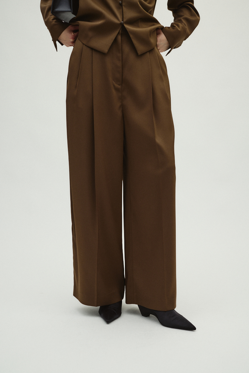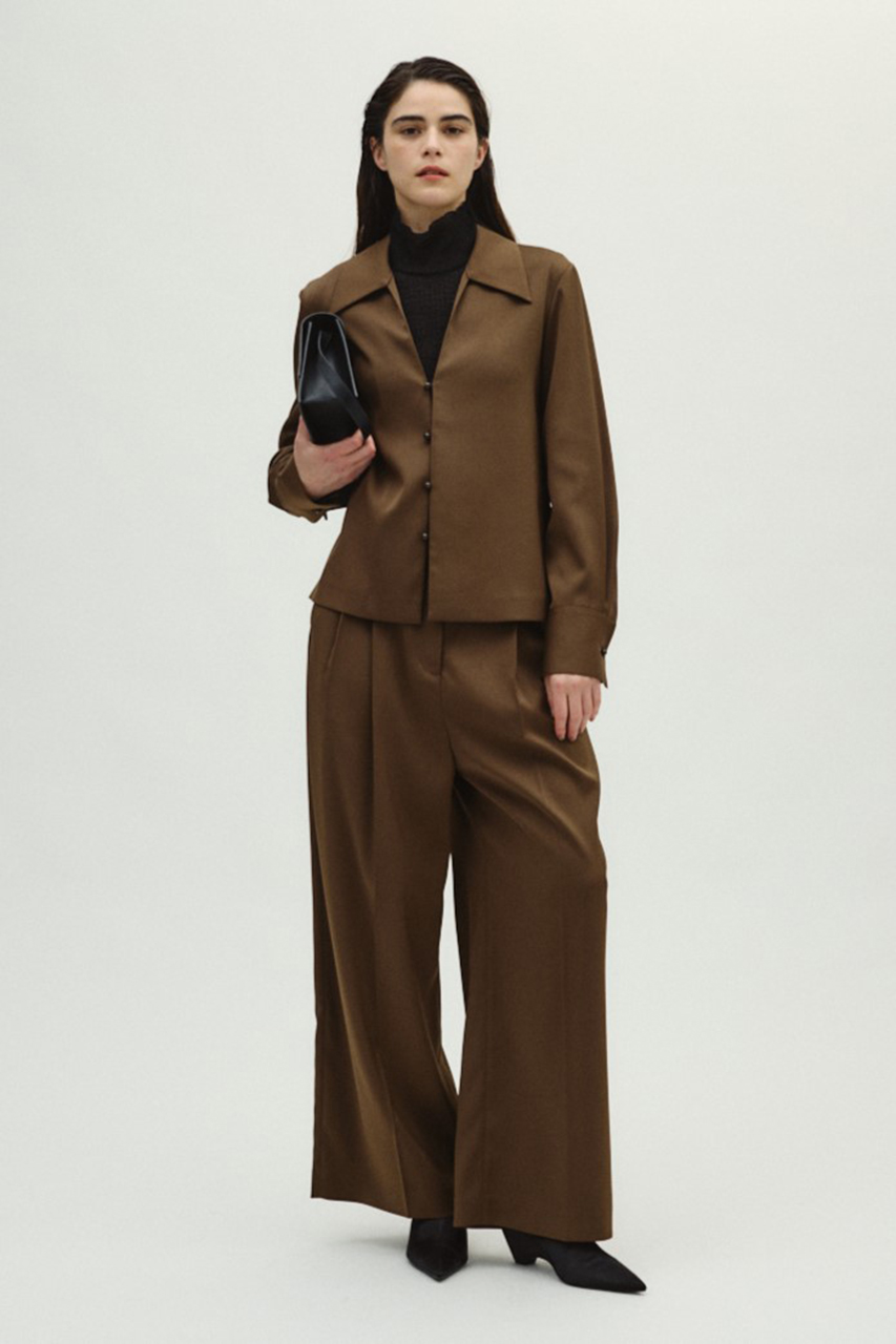ラグジュアリーなルックスのダブルサテンとミニマルなデザインの融合が魅力。合わせるだけでコーディネートを格上げするストレートパンツ。滑らかな肌触りと美しい落ち感が特徴のダブルサテン生地を使用。「リムアーク」定番のウエストアジャスターディティールでサイズ調整も叶います。同素材のジャケットと合わせたセットアップスタイルならオケージョンなど特別なシーンに纏いたい華やかな装いが完成します。ミニマルなデザインのため単品でも着回し力が高く、シンプルなニットからカジュアルなTシャツまで、合わせるトップスを選ばずオンオフ問わず活躍します。