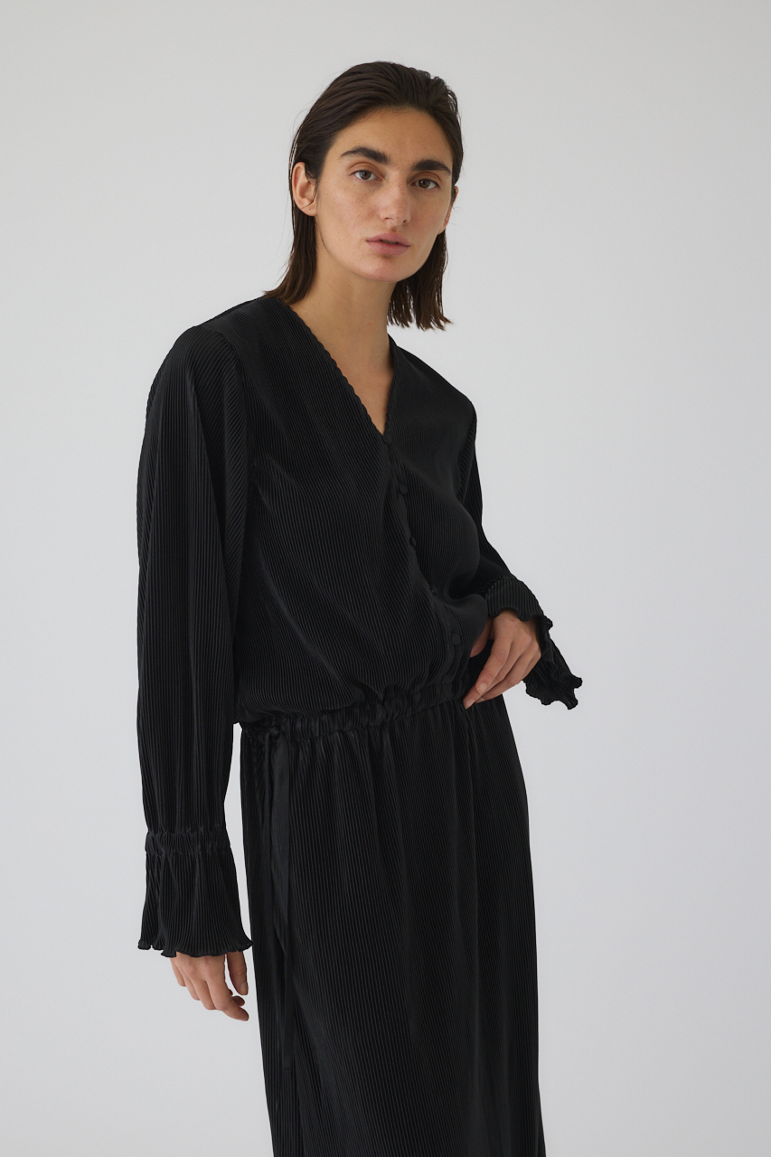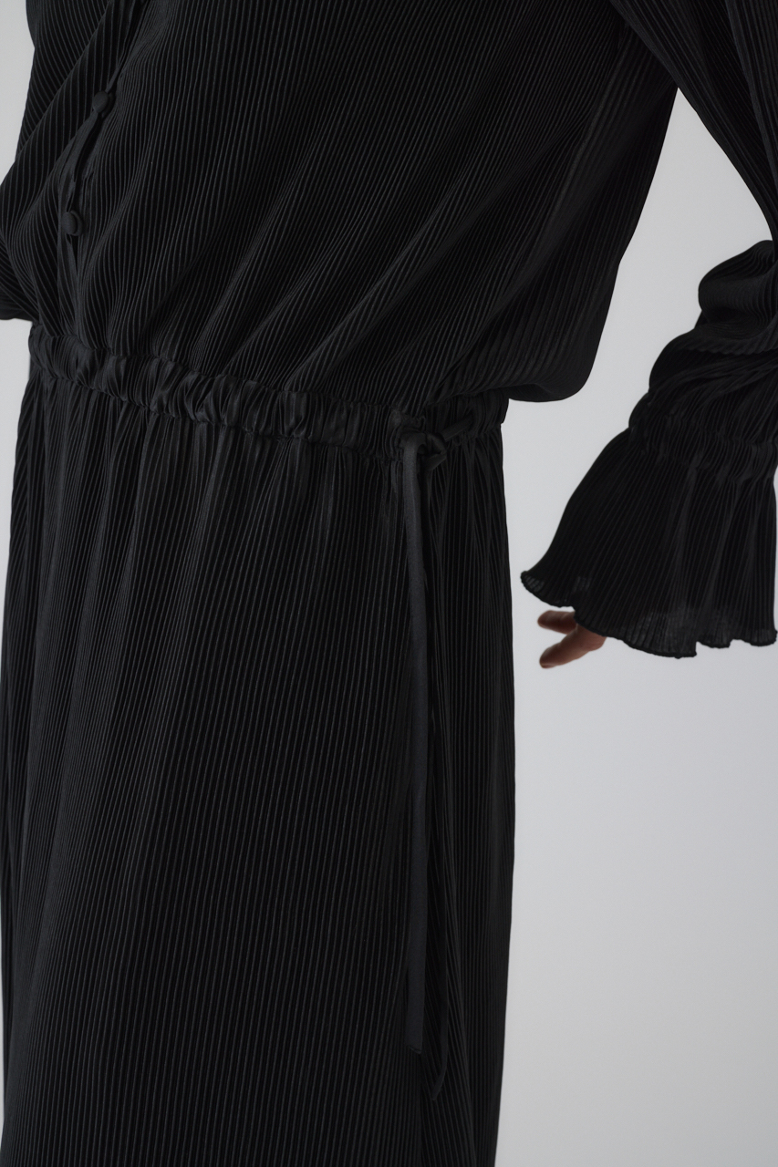 シックでエレガントな佇まいながら、気負わずリラックスして着られるプリーツドレス。シワになりにくく、ボディラインを拾わないストレスフリーな着心地で、日常から特別な日まで幅広く寄り添う一着です。美しい落ち感を持つポリエステルのプリーツ生地を贅沢に使用。ウエストには調整可能なコードを施し、そのままストンと着たりきゅっと絞ってメリハリをつけたりと、シルエットの変化を楽しめます。スニーカーやブーツを合わせてデイリーにヒールや華やかなアクセサリーを合わせれば結婚式やディナーなどのオケージョンシーンにもマッチします。