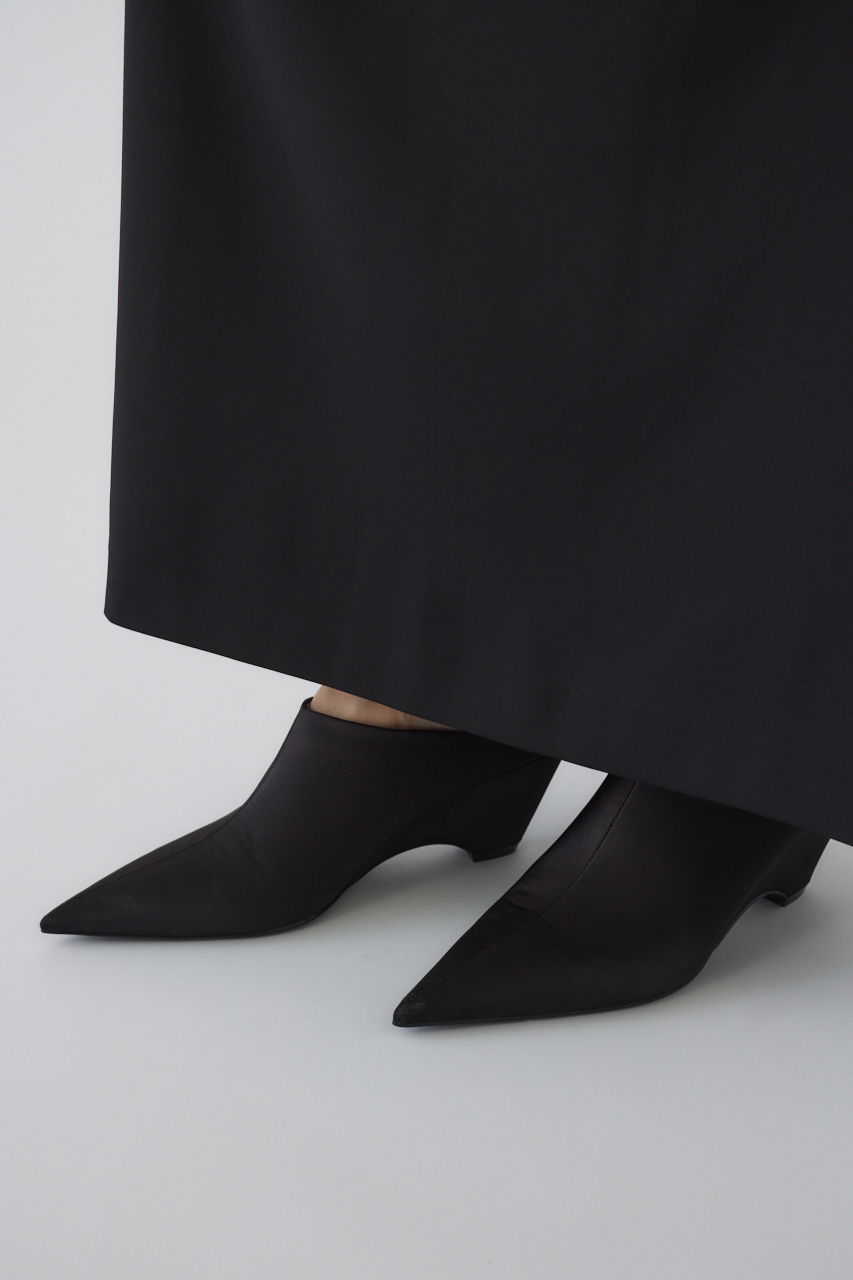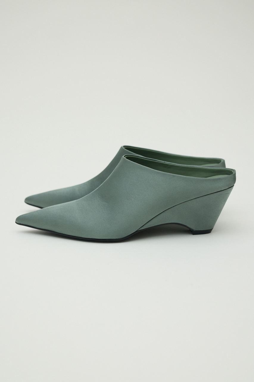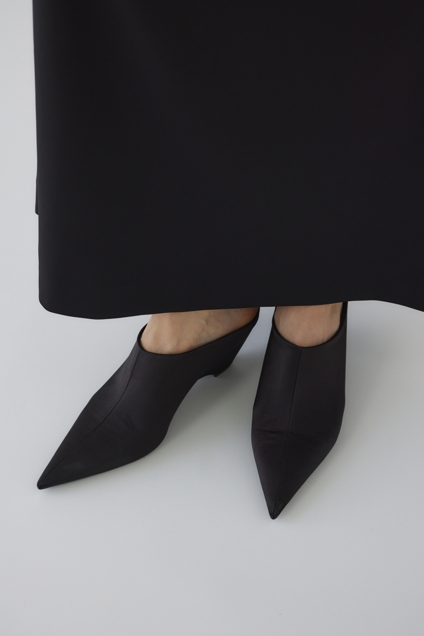 上品なサテンの光沢がリュクスな雰囲気を演出し、履くだけで足元を華やかにクラスアップ。脚のラインを美しく見せるシャープなシルエットが魅力です。アッパーからヒールまで、光沢の美しいサテン生地で贅沢にくるんだポインテッドトゥミュール。デニムなどカジュアルなアイテムと合わせれば、コーディネートを格上げするアクセントに。ドレスやスラックスと合わせれば、結婚式やパーティーといったオケージョンシーンにも最適です。