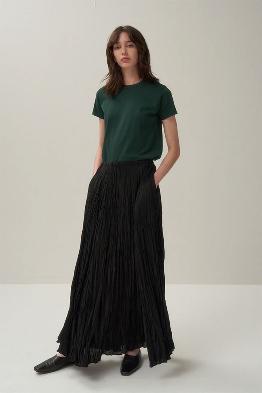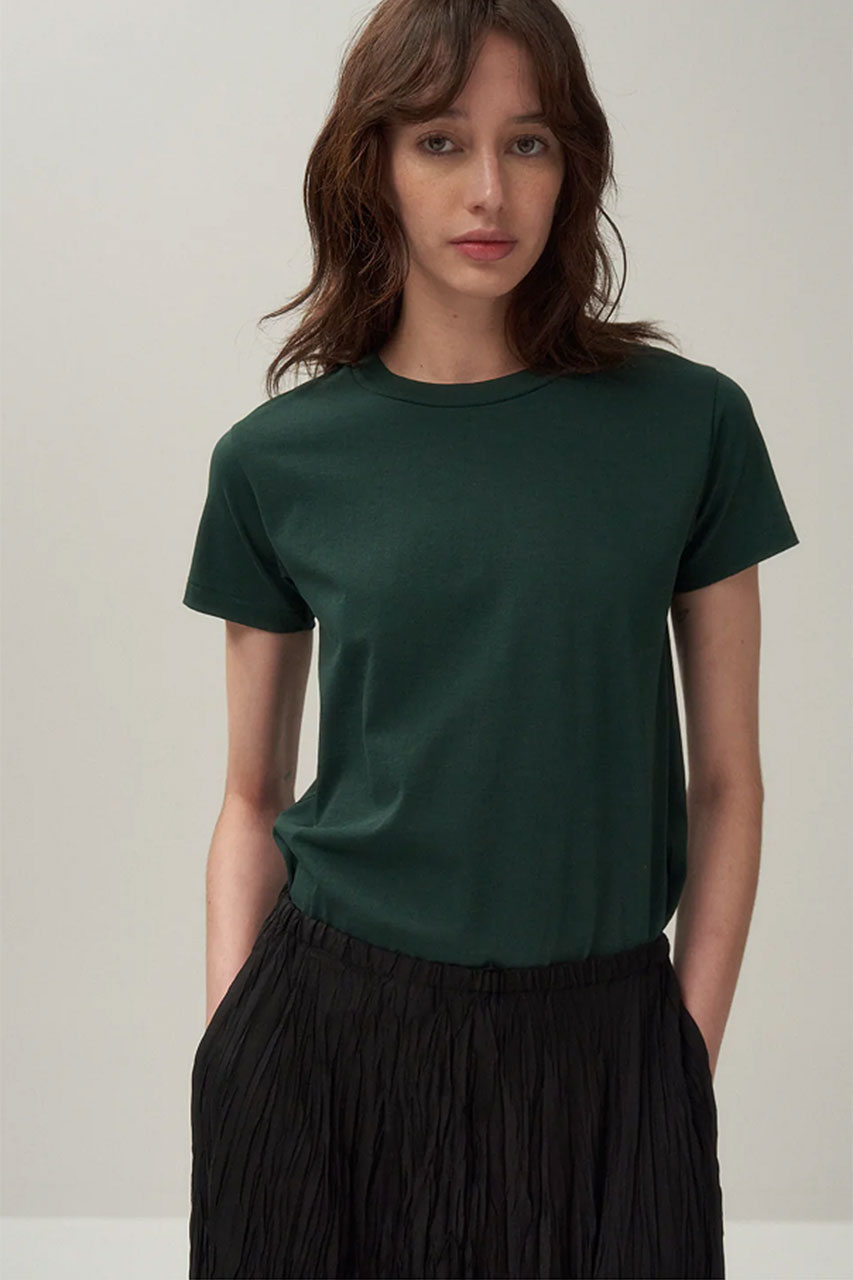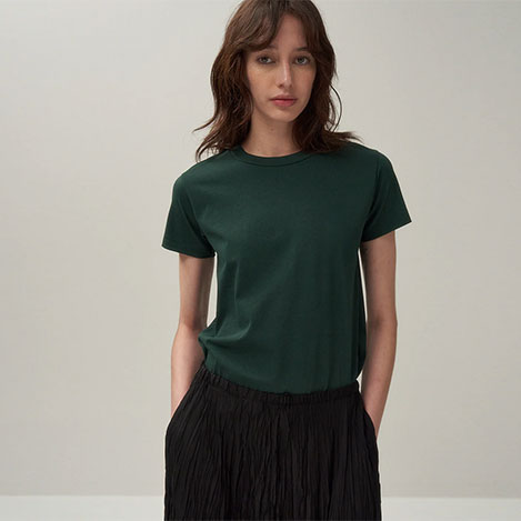 コンパクトなシルエットで、ワードローブに活躍必須の半袖Tシャツも。1枚でも着用しやすいアイテムです。