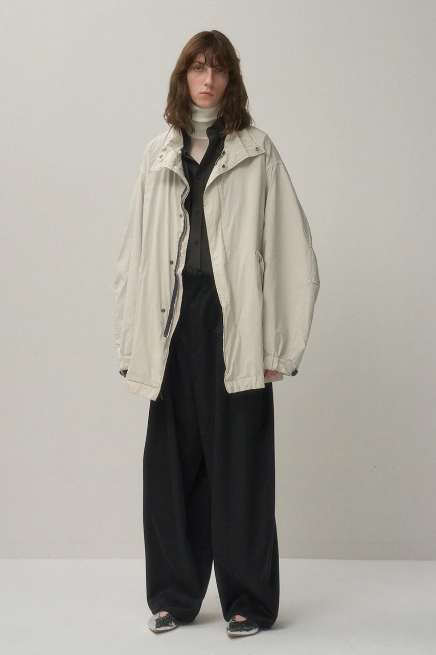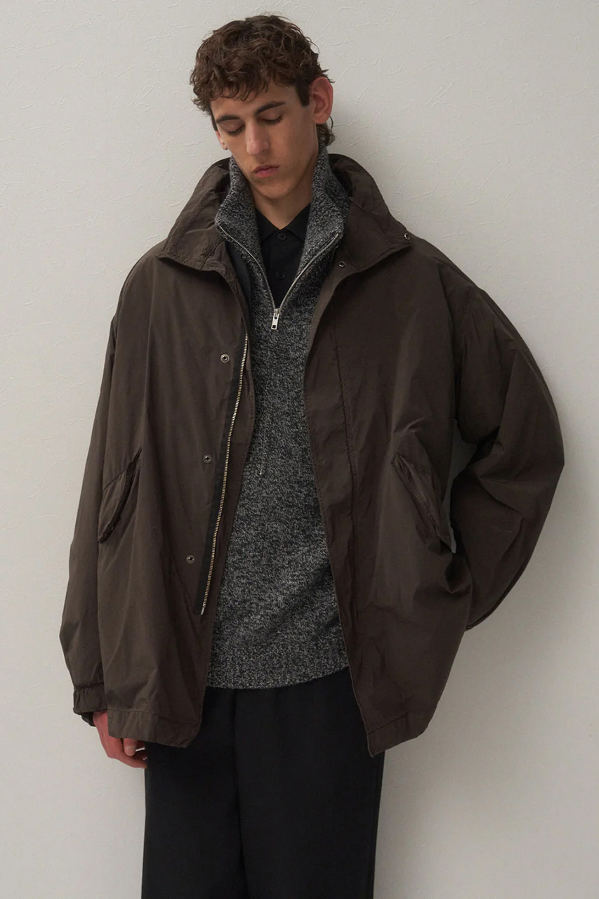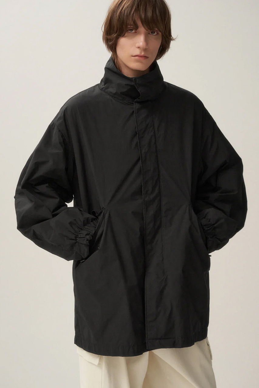 アメリカ軍のM-65モッズコートをベースにデザインした逸品。ポリエステルとナイロンの熱収縮率の違いを生かした膨らみのある混繊糸を、石川県能美市で特殊加工した生地を採用。軽い着心地と、自然な光沢感とふくらみのある天然繊維のような独特の風合いが◎。はっ水加工を施し、シワにもなりにくく、ライナーも取り外せる仕様だから、ロングシーズン着まわせるのも嬉しいポイント。※ブラックのみの展開となります。