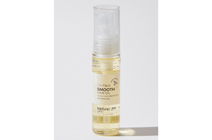 ⑤ある程度乾いたらもう半プッシュパーフェクト スムース ヘアオイルをつけてロールブラシなどを使ってしっかり乾かします。(オイルの量は髪の毛の量によっても変わります)