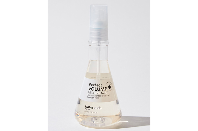 パーフェクト ボリューム テクスチャーミストをシュッシュとふりかけて、少しドライヤーで乾かすと、しっかりしたコシやハリのある髪に。
