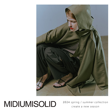 「ミディウムソリッド」のスプリングコートでもあるフード付きオーバーコートです。