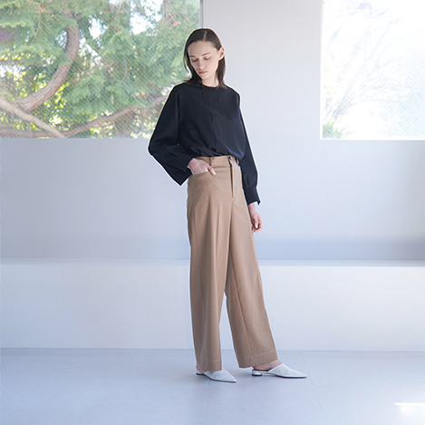 フロントに太めのタイディティールを施したクルーネックブラウス。裾はラウンドデザインで、インでもアウトスタイリングでもきれいに決まります。ゆったりとしたシルエットで着心地も抜群。深めに施した裾スリットで抜け感の出るアイテムです。